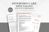 Editable Newborn Care Specialist Service Agreement, Postpartum Baby Nurse Contract Template, Minimalist 6 Page Canva Template #2013