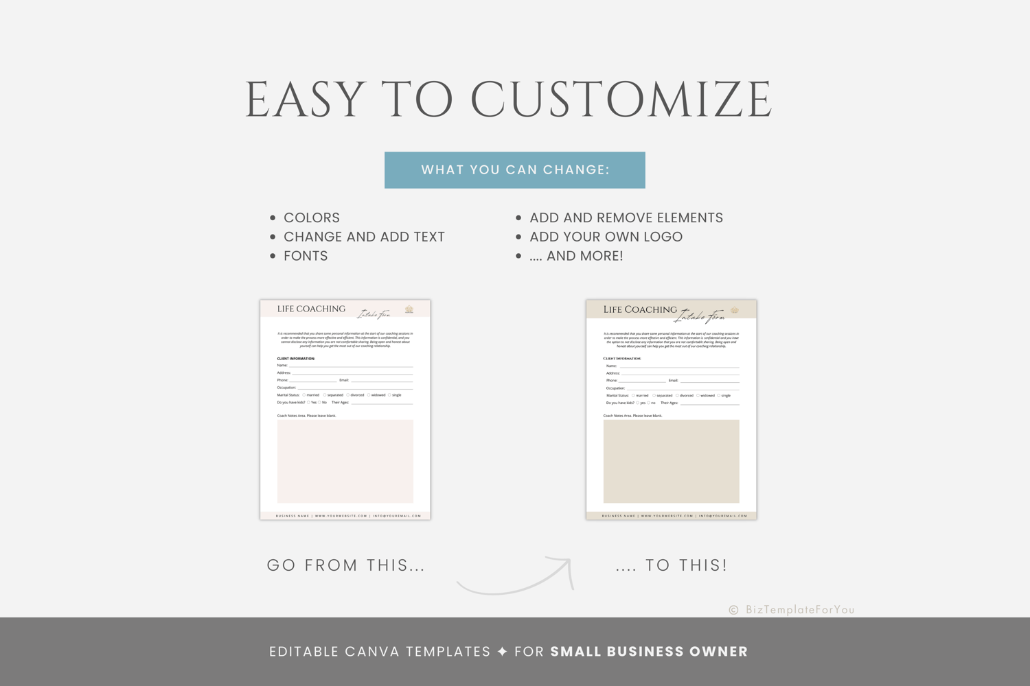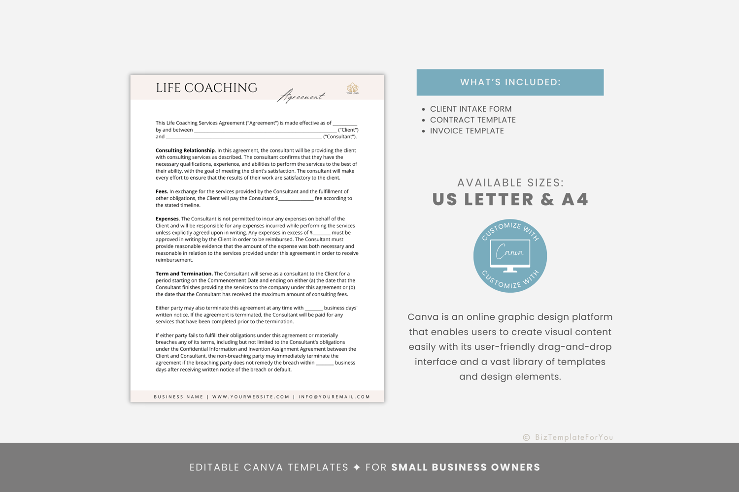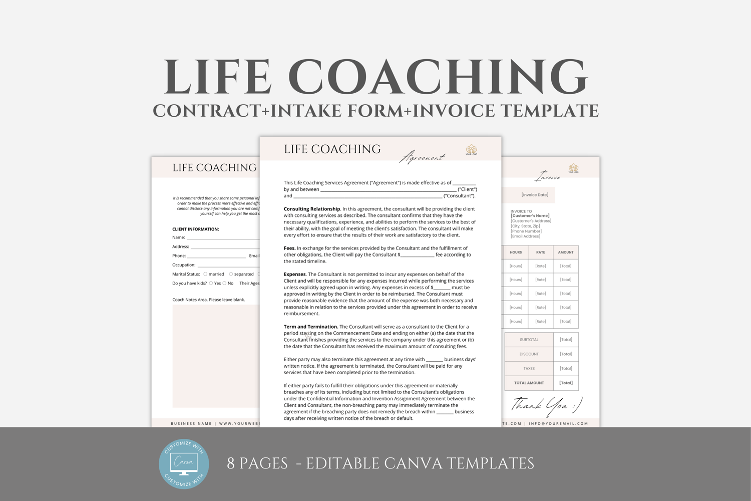 Editable Life Coach Templates Bundle, Life Coach Contract, Life Coaching Client Intake Form, Coaching Business Forms, Canva Agreement #2087