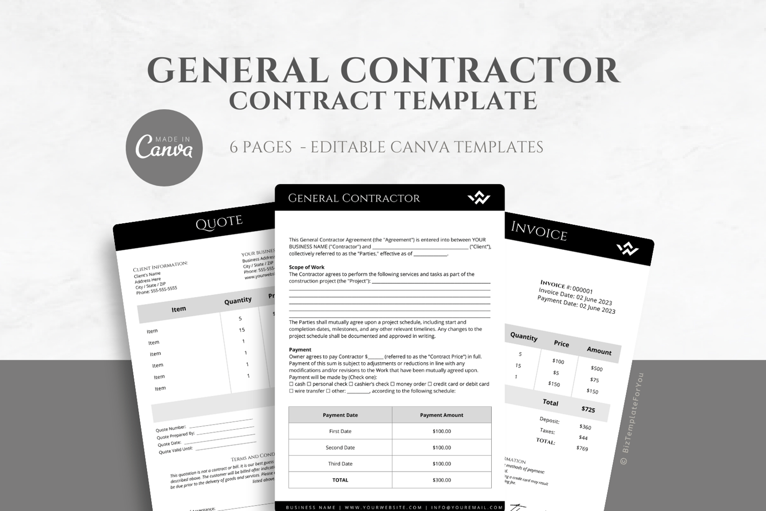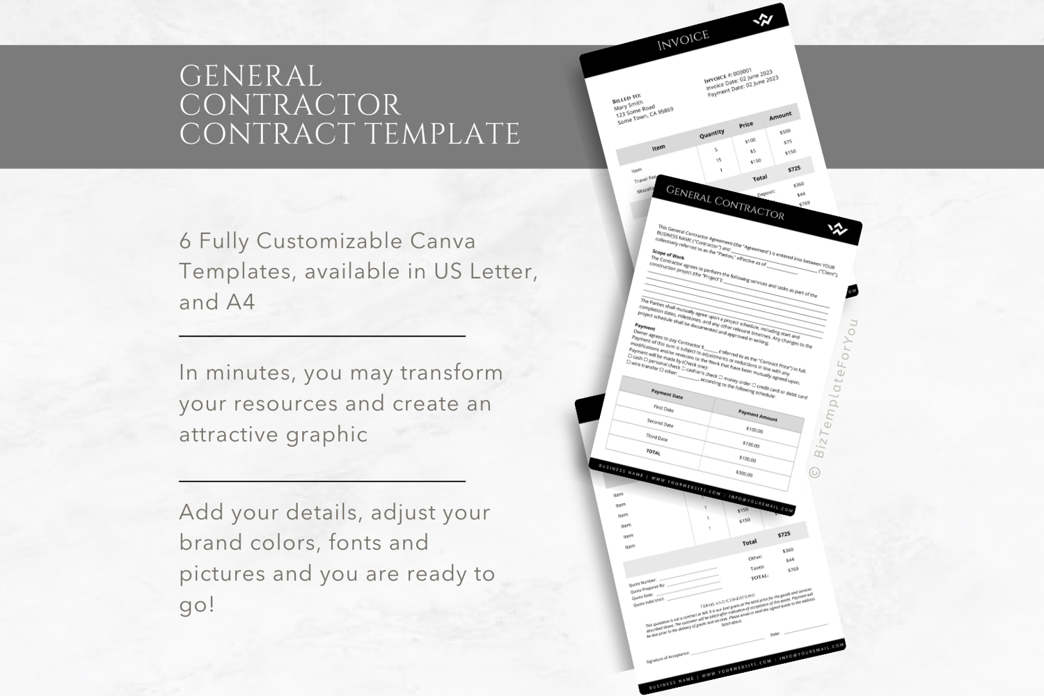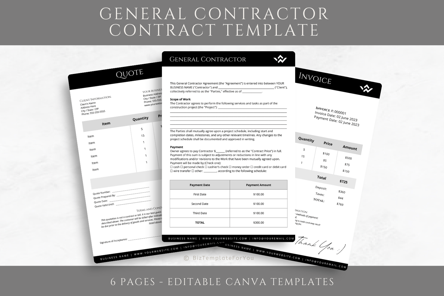 This is a 6-page Editable Painting Contract Template editable in Canva (FREE Account)! The text is already written for you but it is also easily edited in CANVA to add anything that is particular to your business or area it is also completely customizable. Text, font, and colors are all fully editable to give you complete control of your branding and create a cohesive look for your business.