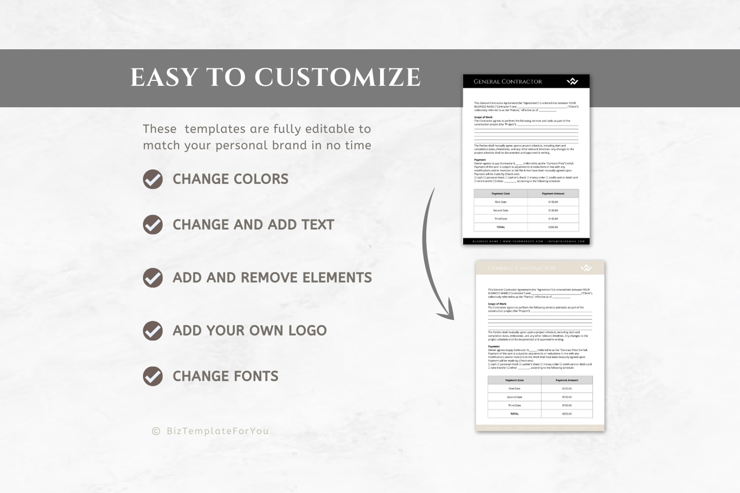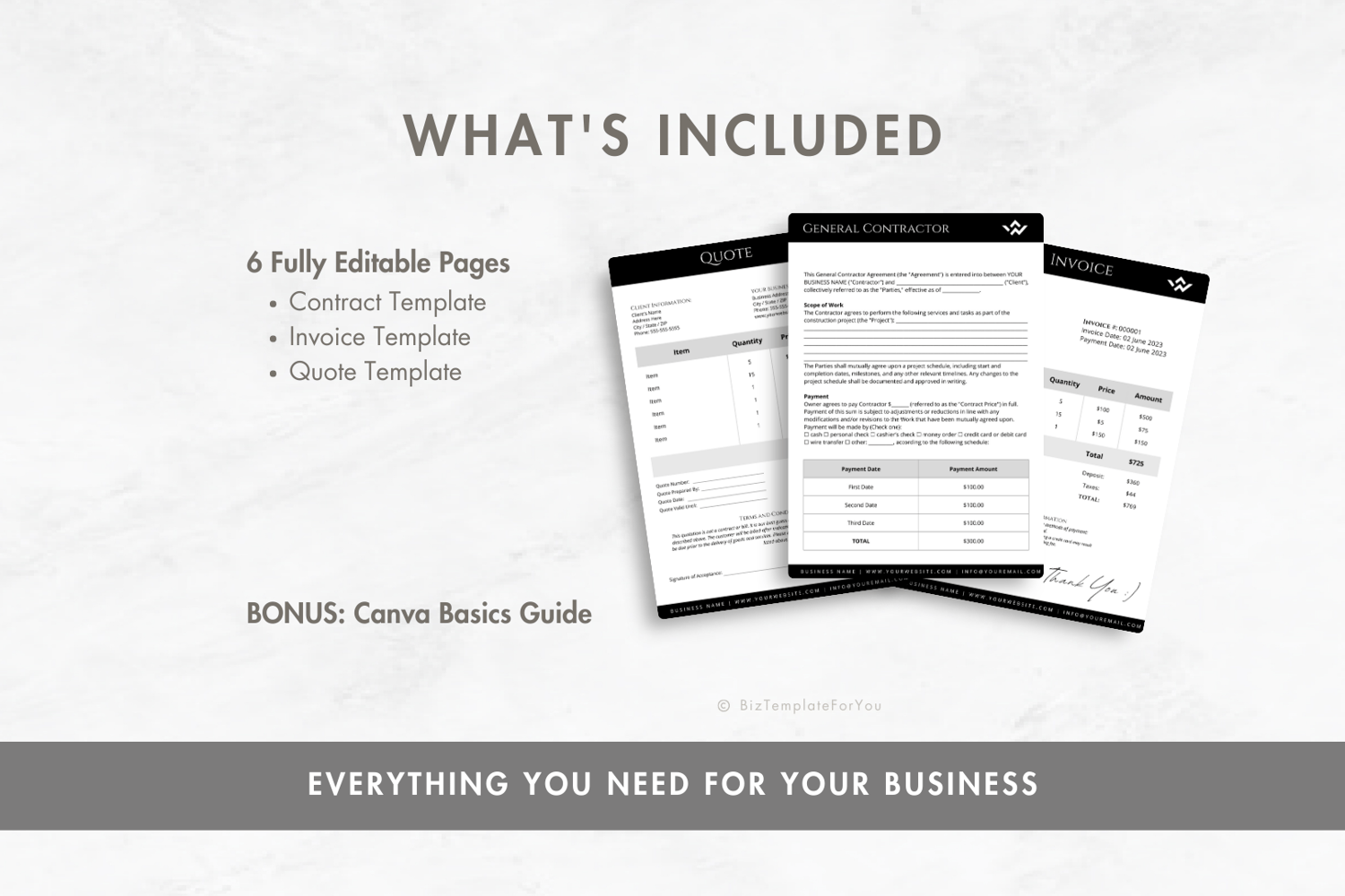 All of the files included in this download are original and copyrighted by Biz Templates For You. Files are for personal use only and may not be resold, copied, distributed, or shared with a third party. ©BIZ TEMPLATES FOR YOU
