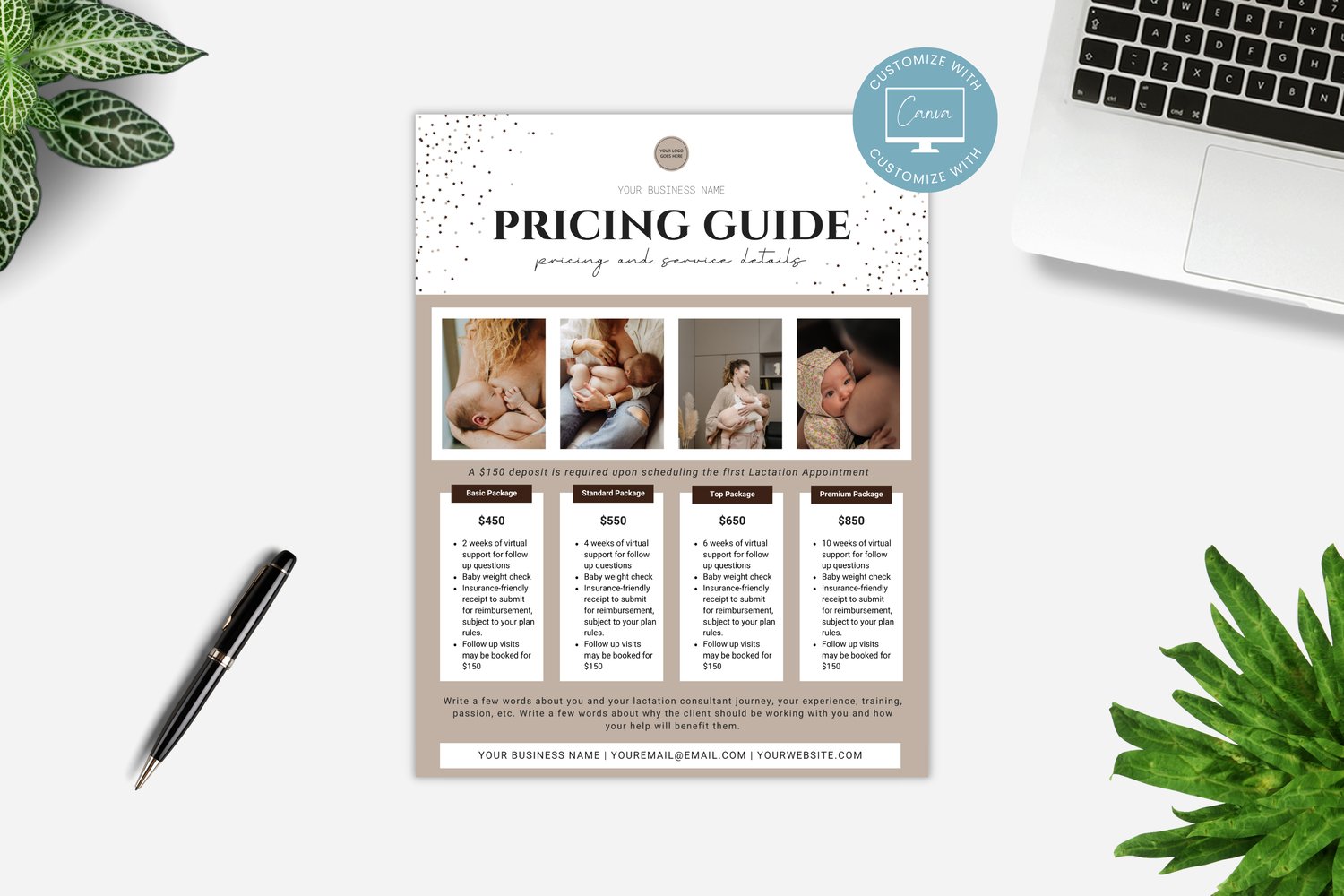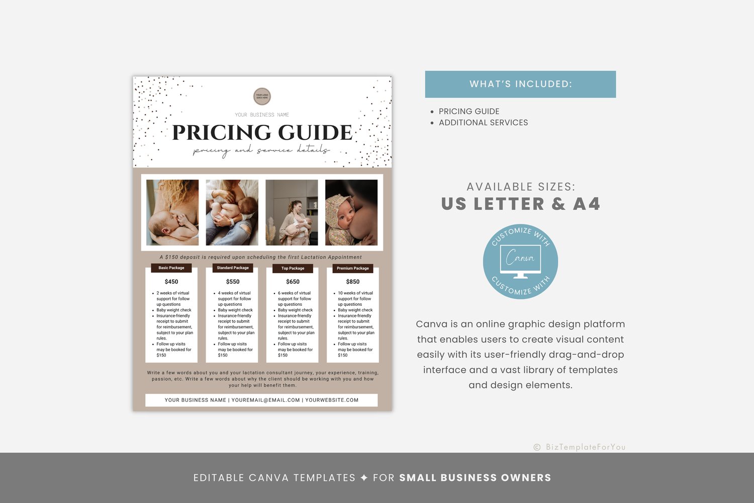Editable Lactation Consultant Price List Template, Editable Rate Sheet, Lactation Business Marketing Flyer, Support Pricing Guide, Canva #4002