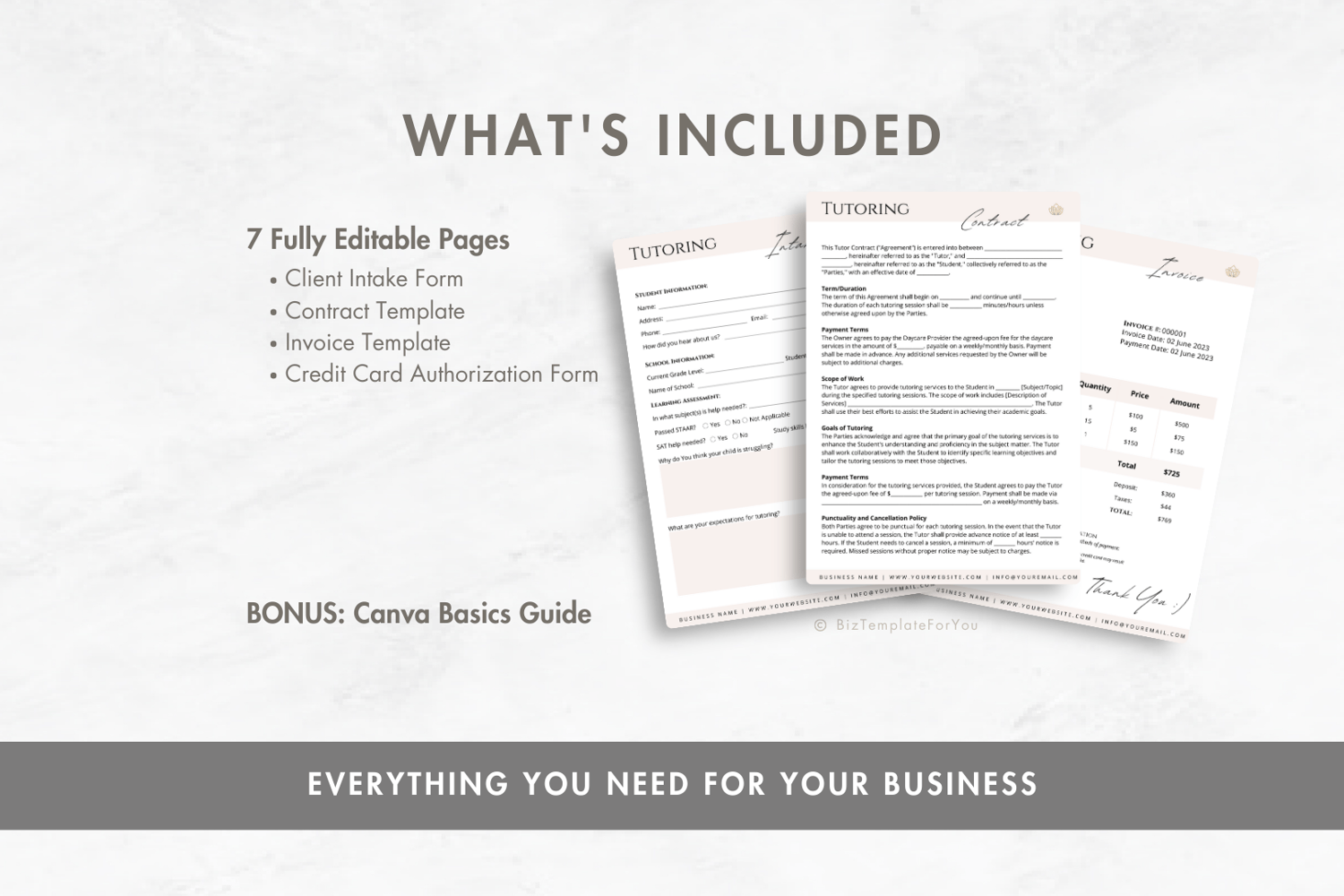 Editable Tutoring Contract Template, Tutoring Service Agreement, Professional Tutor Business Forms, incl. Intake Form and Invoice, Canva editable #3091