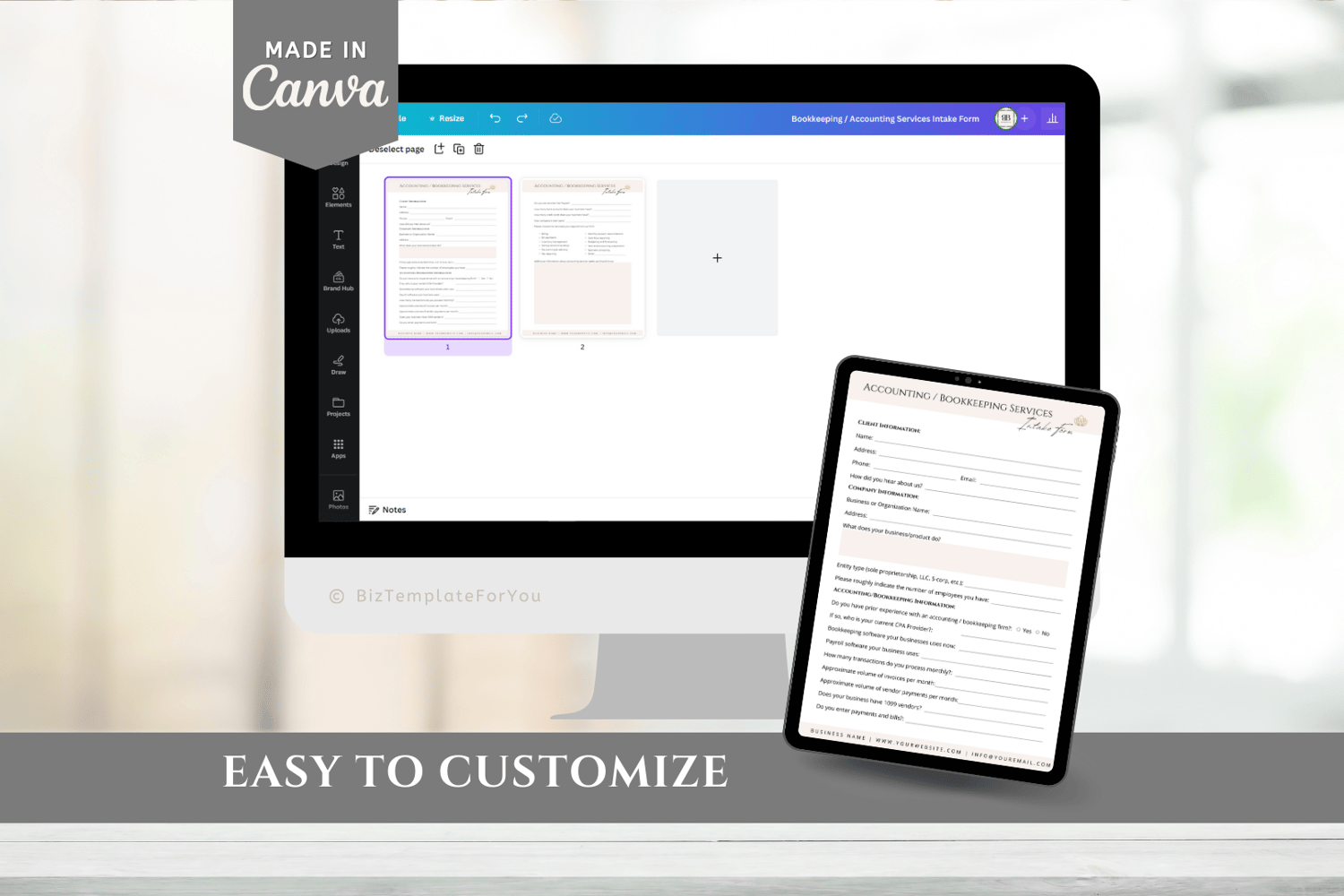 This is a 2-page Accounting & Bookkeeping Intake Form Template editable in Canva (FREE Account)! The text is already written for you, but it is also easily edited in CANVA to add anything that is particular to your business or area. It is also completely customizable. Text, font, and colors are all fully editable to give you complete control of your branding and create a cohesive look for your business.