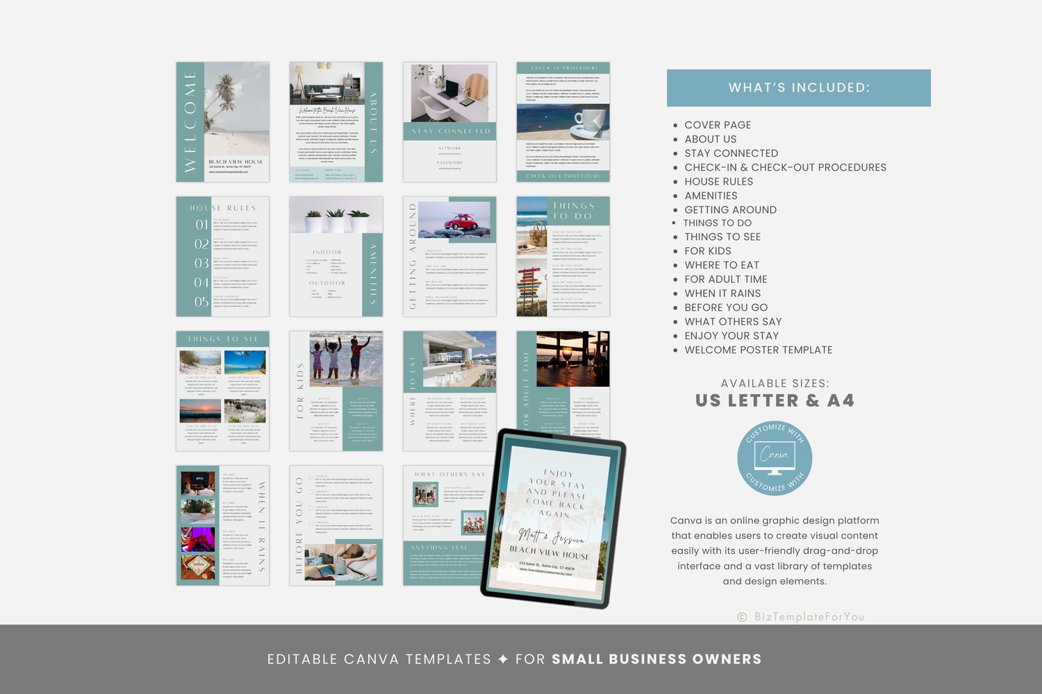 Airbnb Welcome Book Template Beach, VRBO Welcome Book Canva Template, Vacation Rental Welcome Book Template, Airbnb Welcome Packet #1049