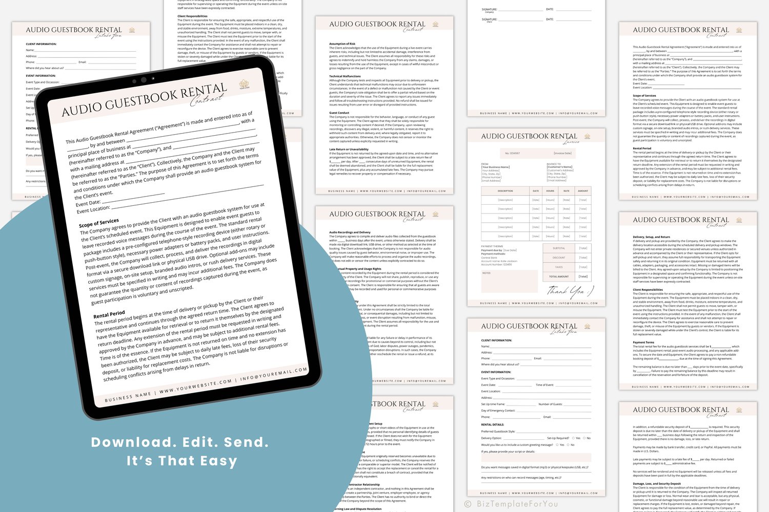• 1 x Audio Guestbook Rental Agreement (fully editable)