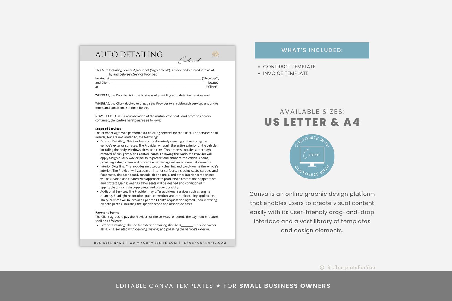 Editable Auto Detailing Service Agreement Template, Car Detailing Contract, Mobile Detailing Agreement, Vehicle Services Form, Canva #6064