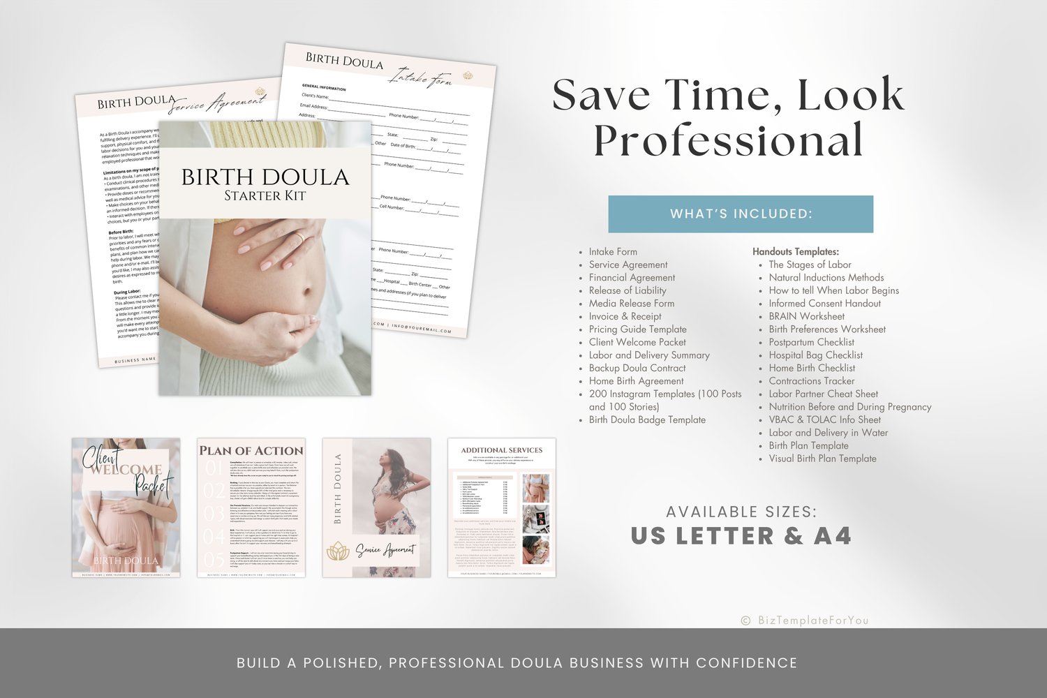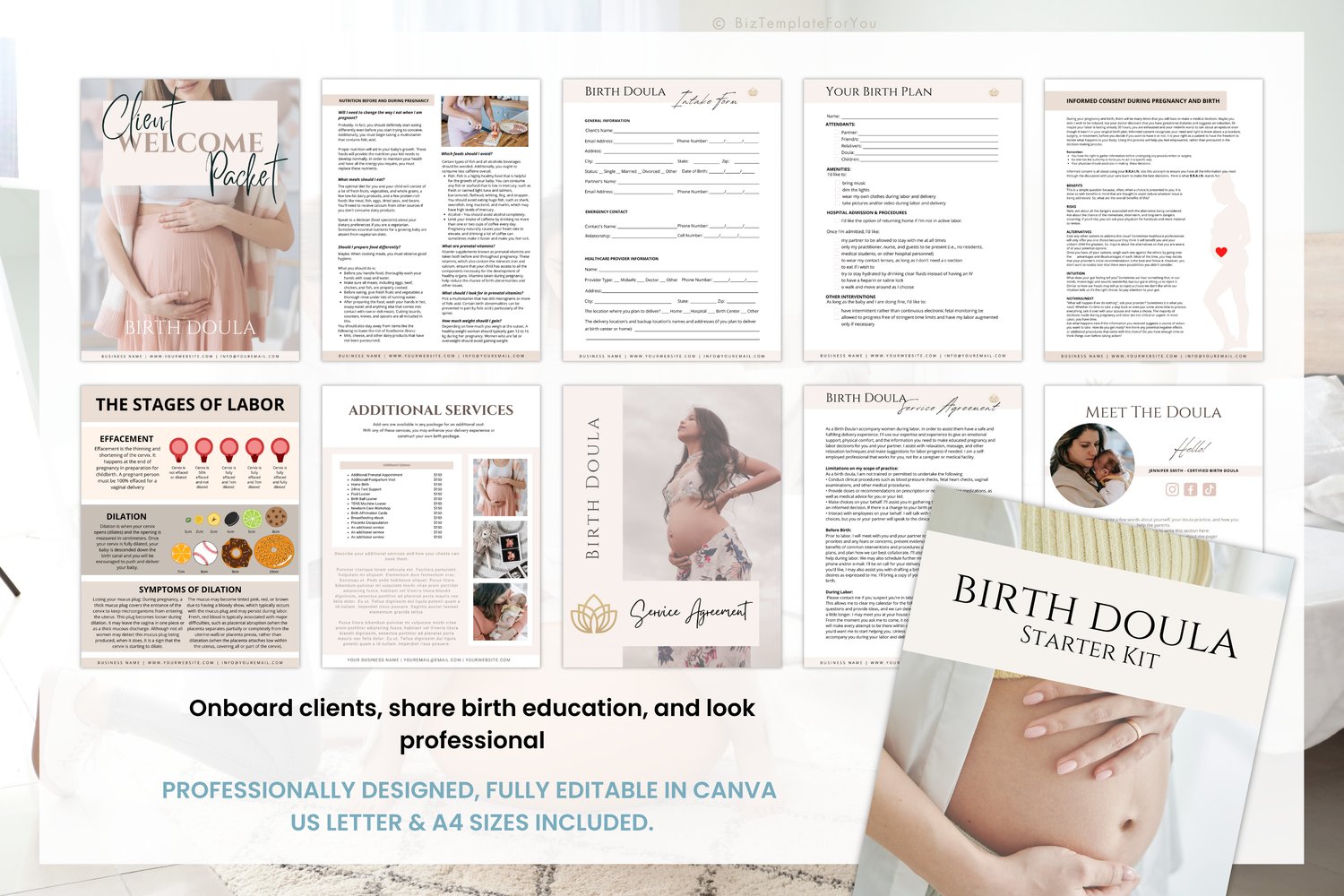 Birth Doula Business Starter Kit | 279 Editable Canva Templates | Client Forms, Contracts, Handouts, Social Media + A4 & US Letter #3064