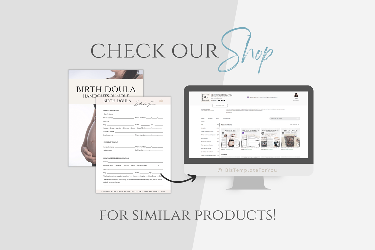 With our Editable Birth Doula Contracts Bundle, you can take the guesswork out of client agreements and elevate your birth doula practice. Start streamlining your client onboarding process, protecting your business interests, and fostering positive client relationships today!
