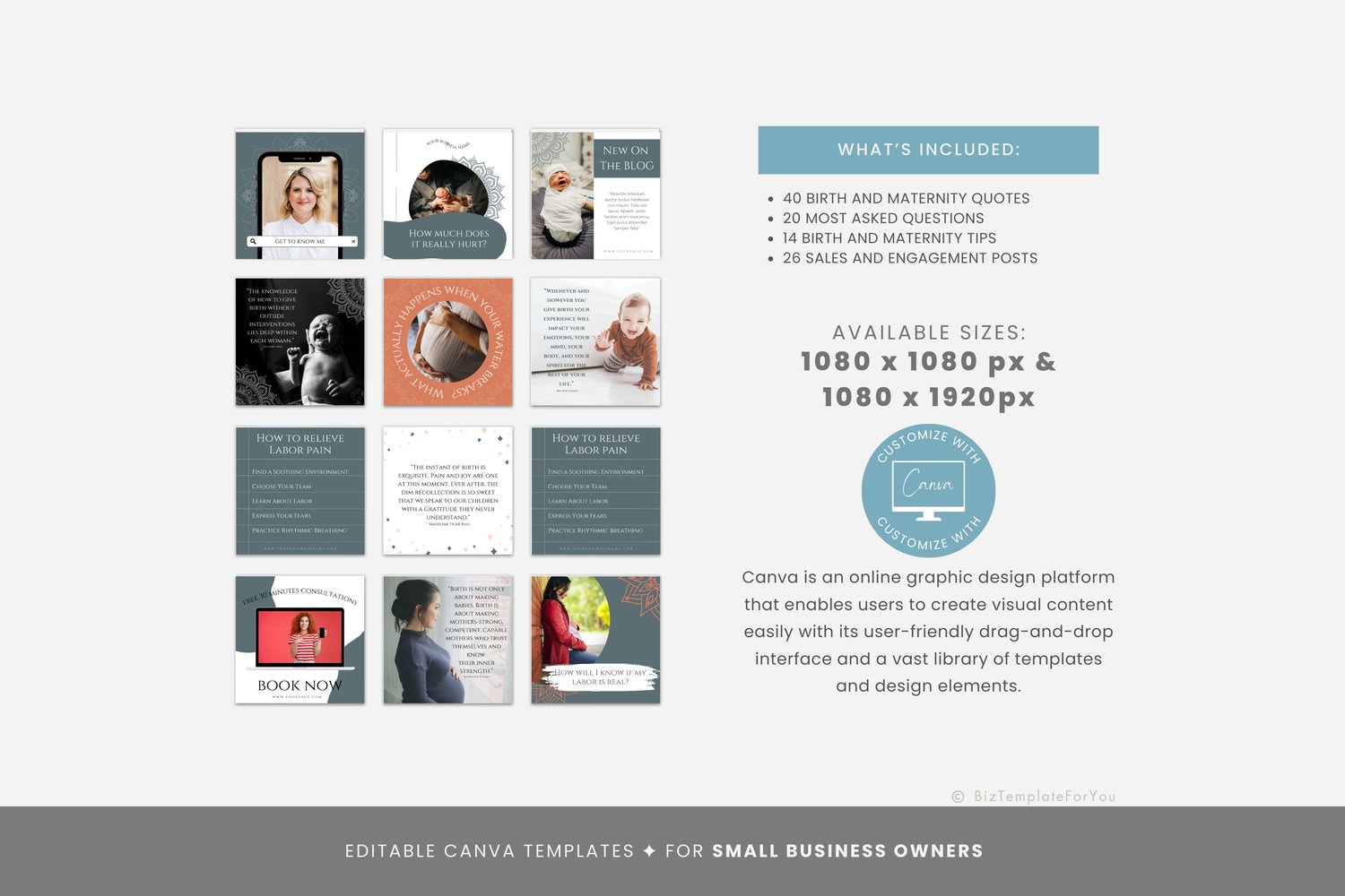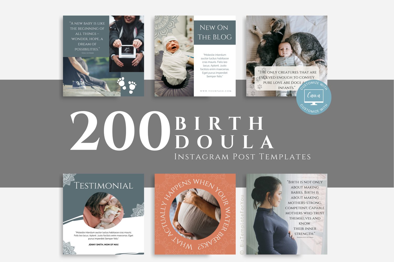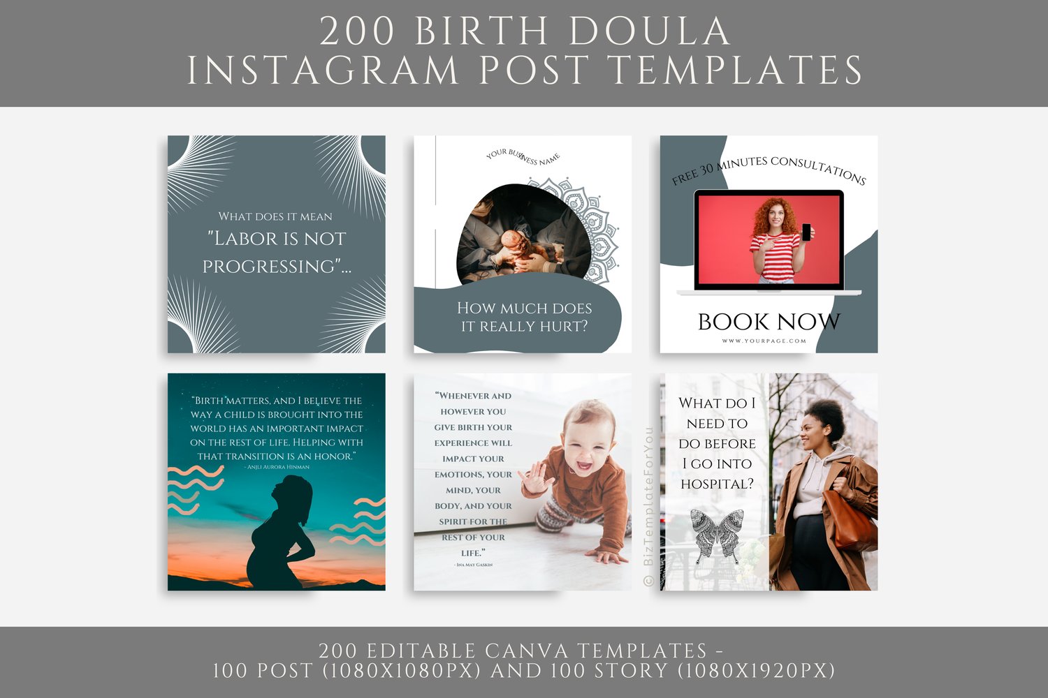 200 Birth Doula Social Media Templates, Doula Instagram Marketing, Posts and Stories Templates, Doula Social Media Content, Canva Editable #1048