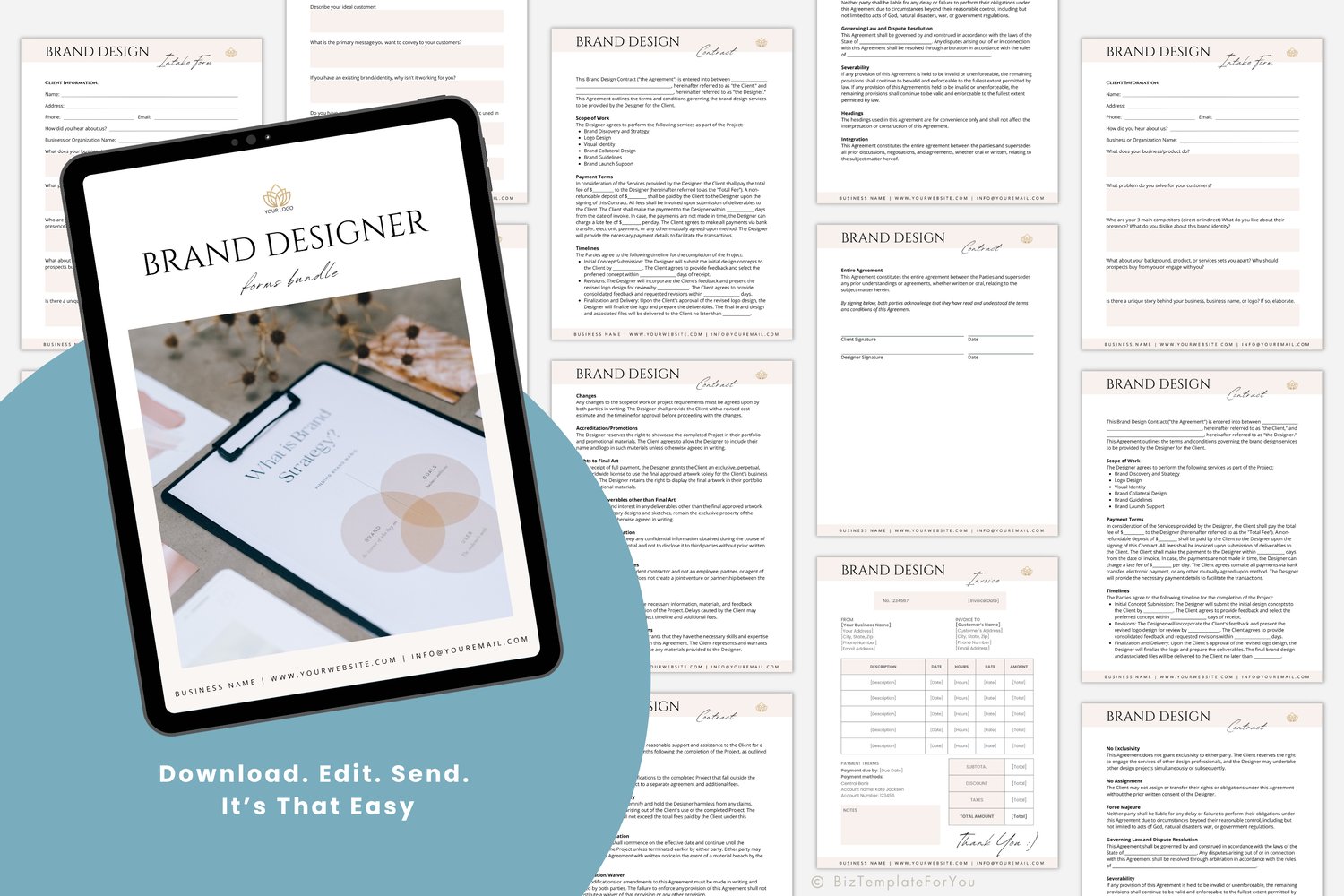 Editable Brand Designer Forms Bundle, Freelance Graphic Design Service Agreement, Contract, Intake Form and Invoice Template, Canva editable #3065