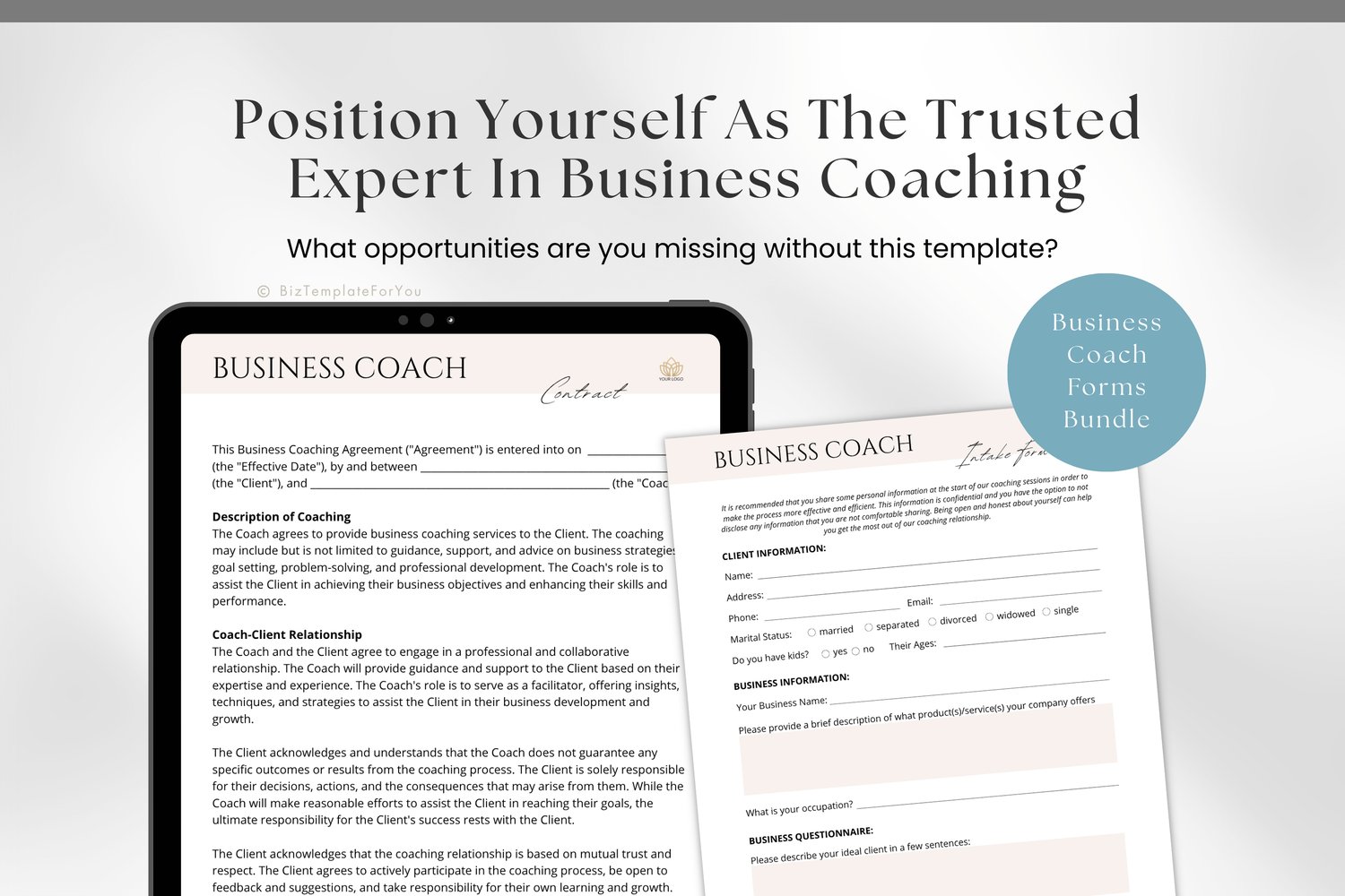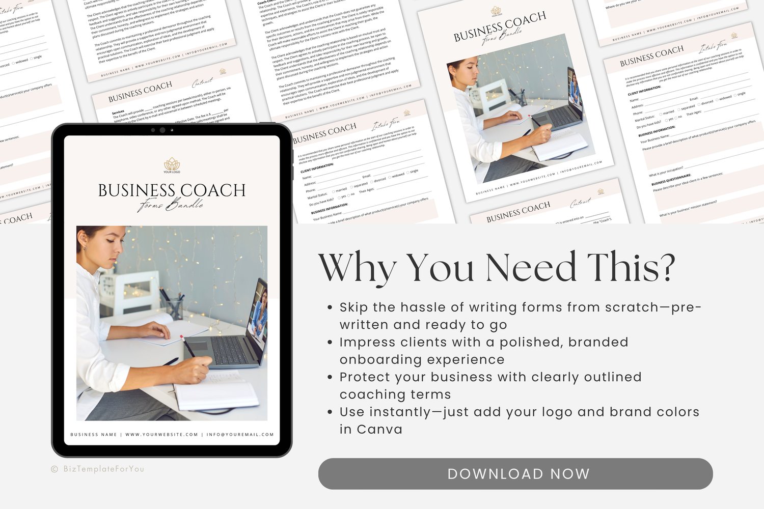 Present your coaching services with confidence using this Business Coach Forms Bundle, designed to help you onboard clients smoothly and professionally.