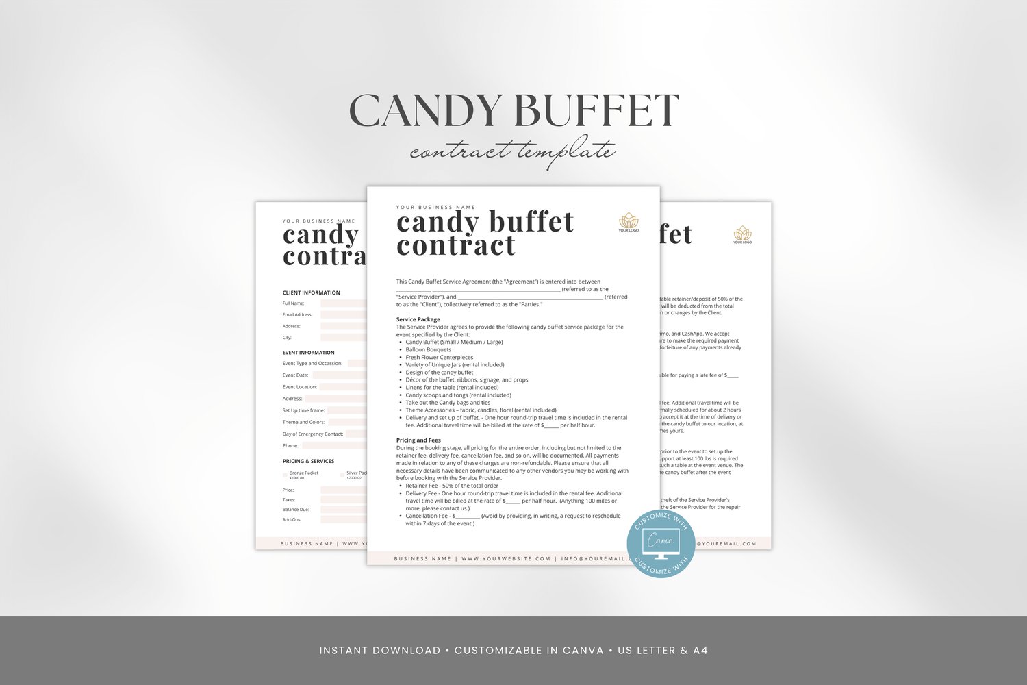 Candy Buffet Contract Template, Catering Business Forms, Editable Dessert Table Terms & Conditions, Candy Buffet Agreement, Event Services #3061