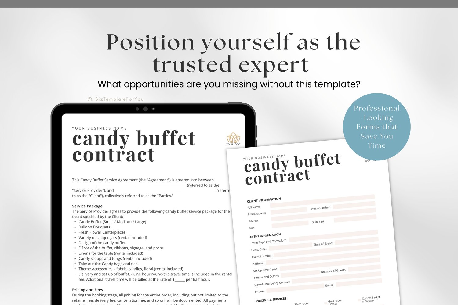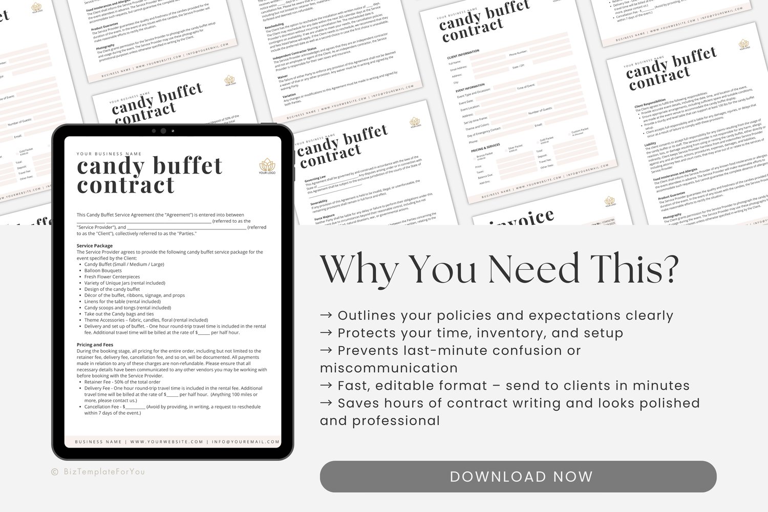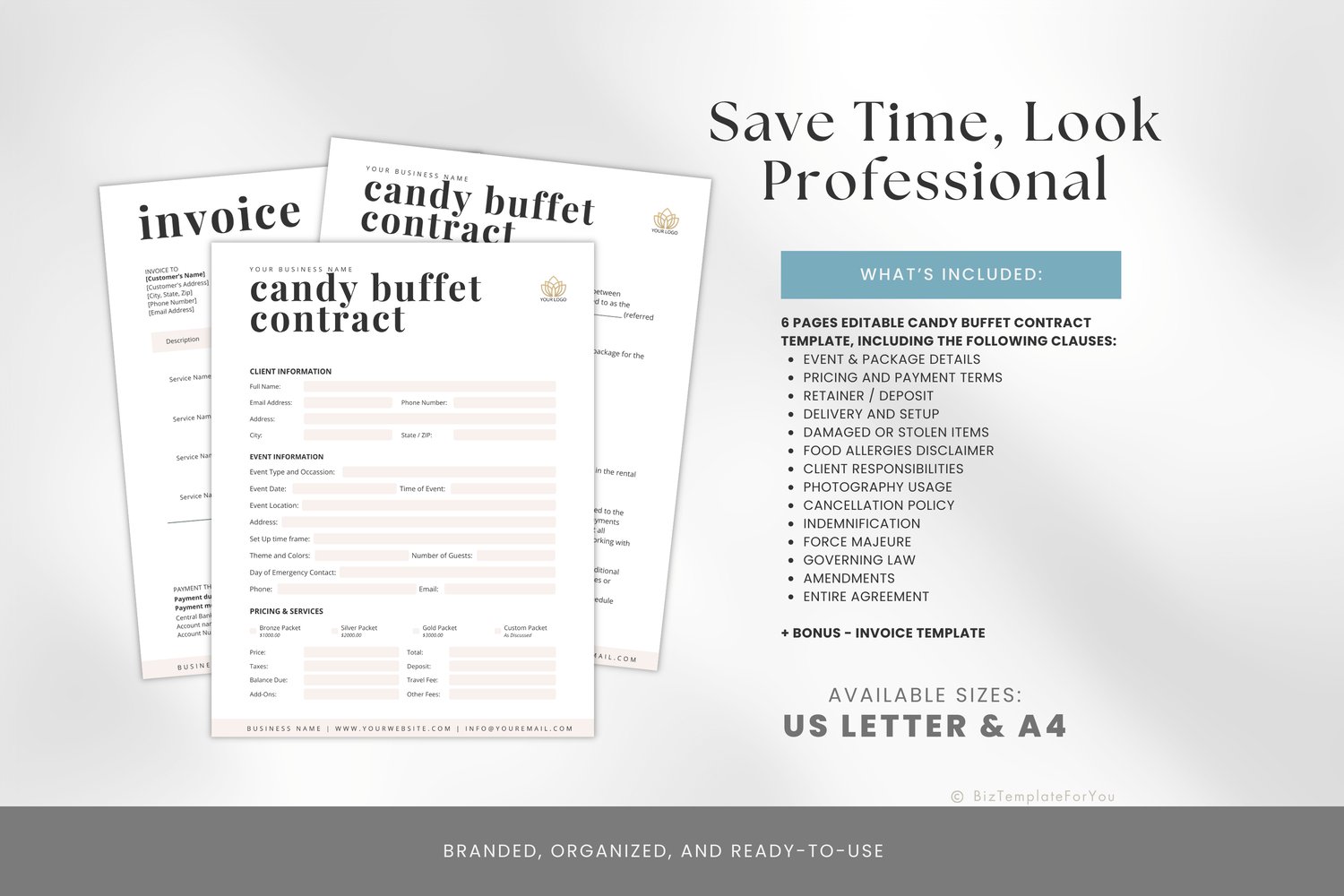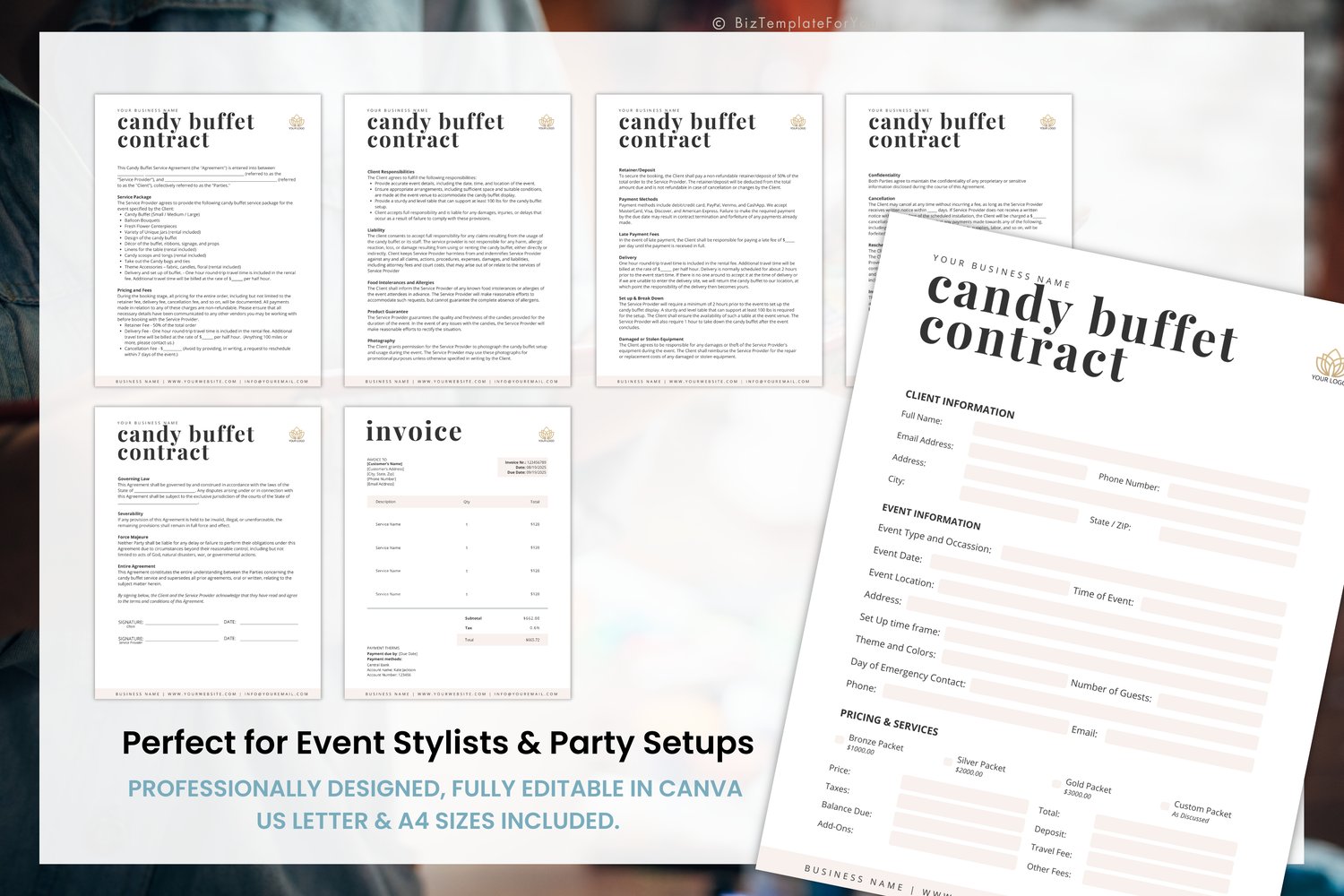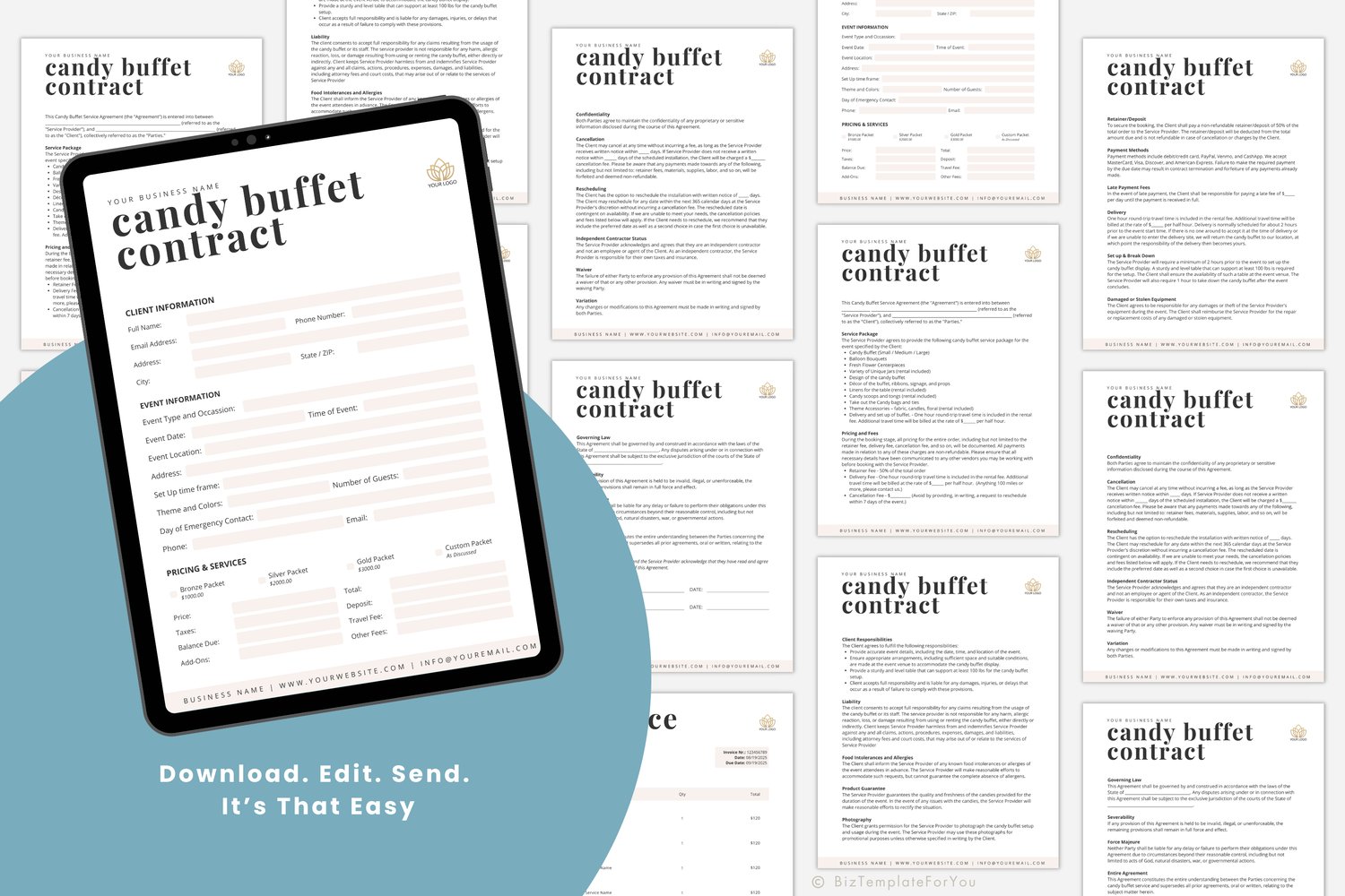 • 1 x Editable Candy Buffet Contract Template (6 Pages) + BONUS Invoice Template