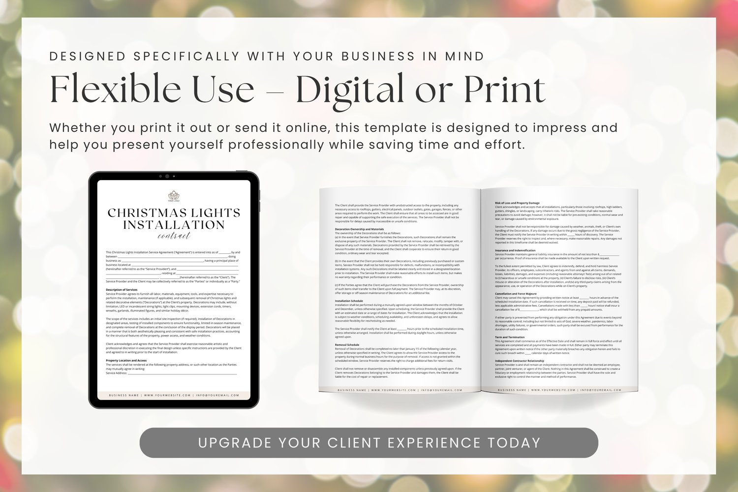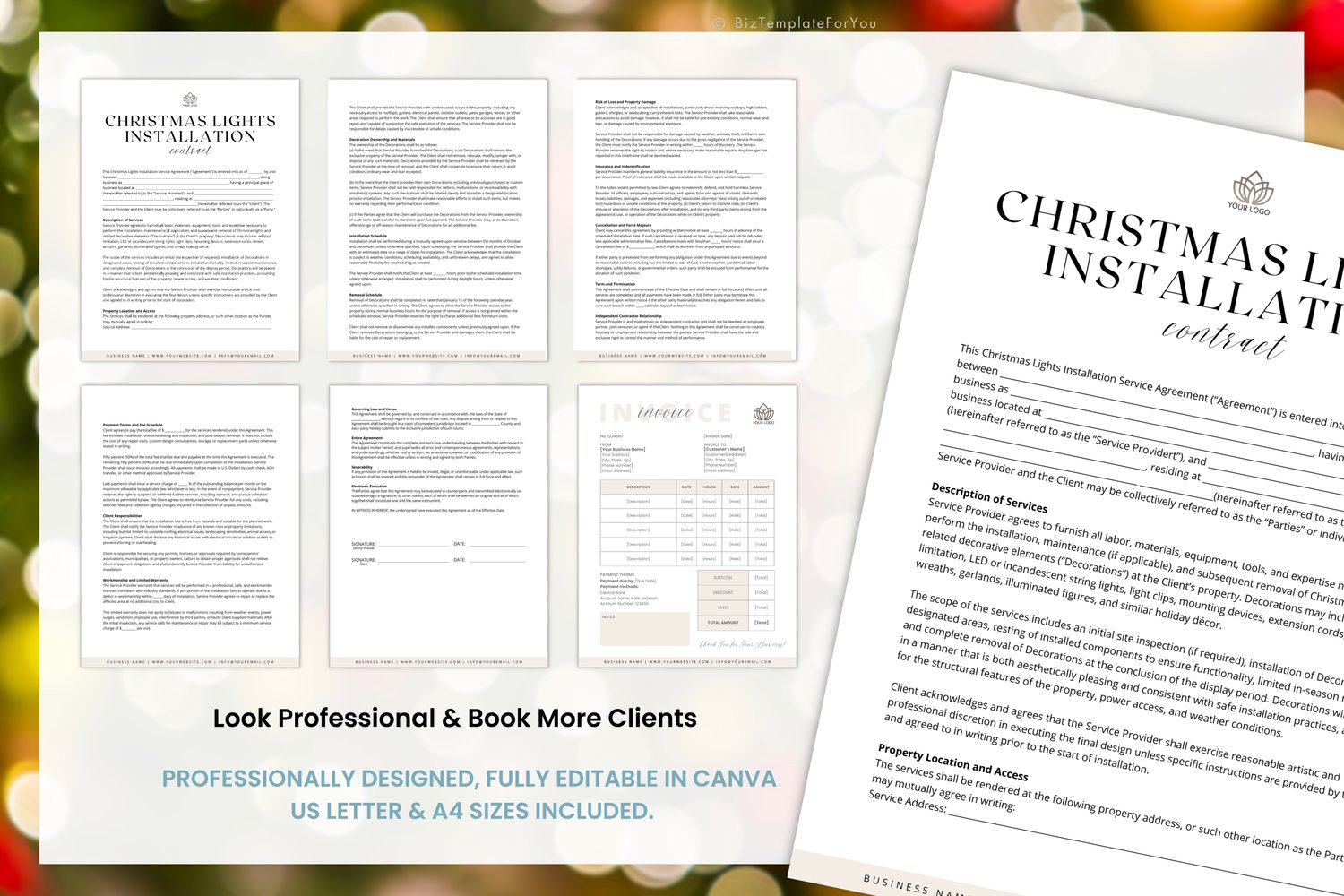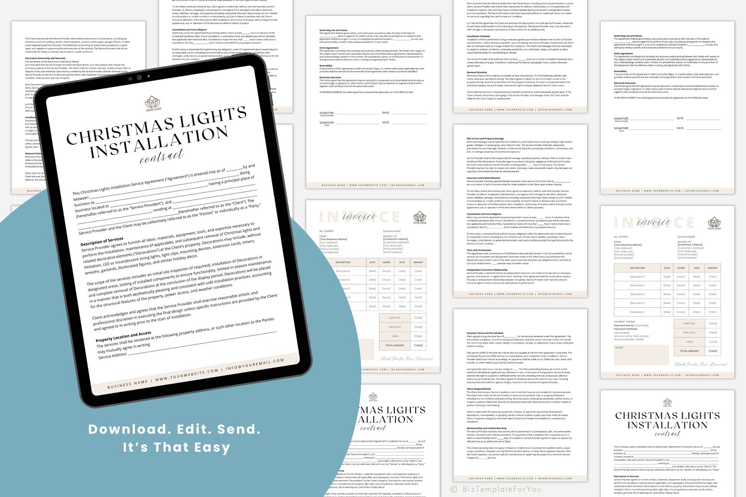 • 1 x Editable Christmas Lights Installation Contract Template (5 pages)