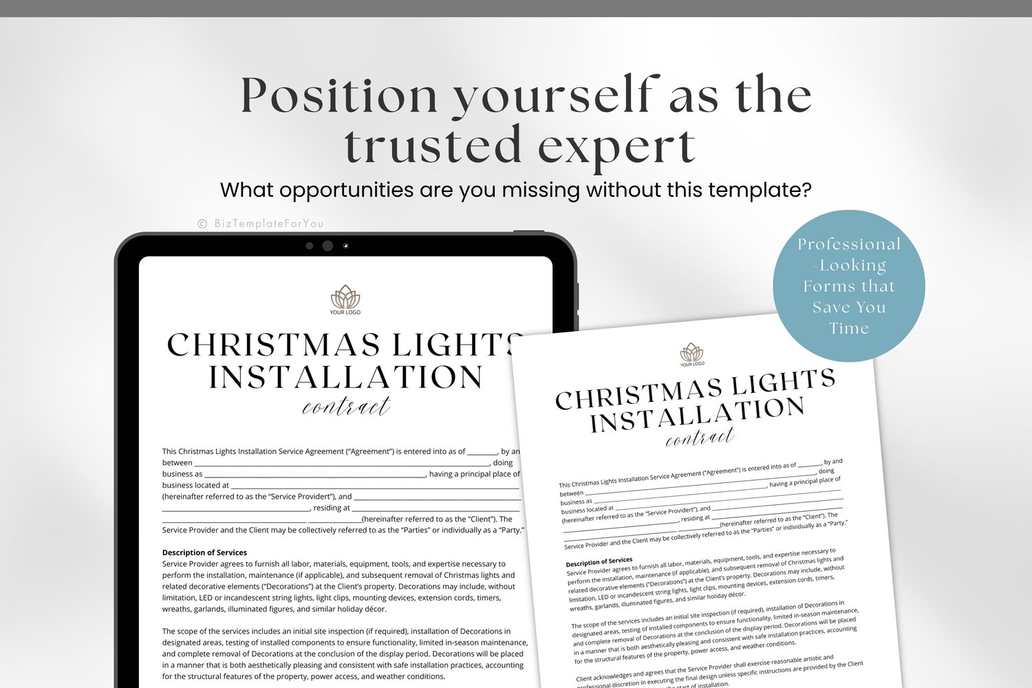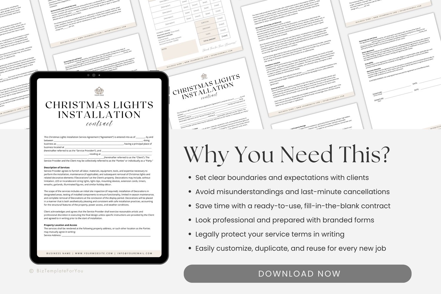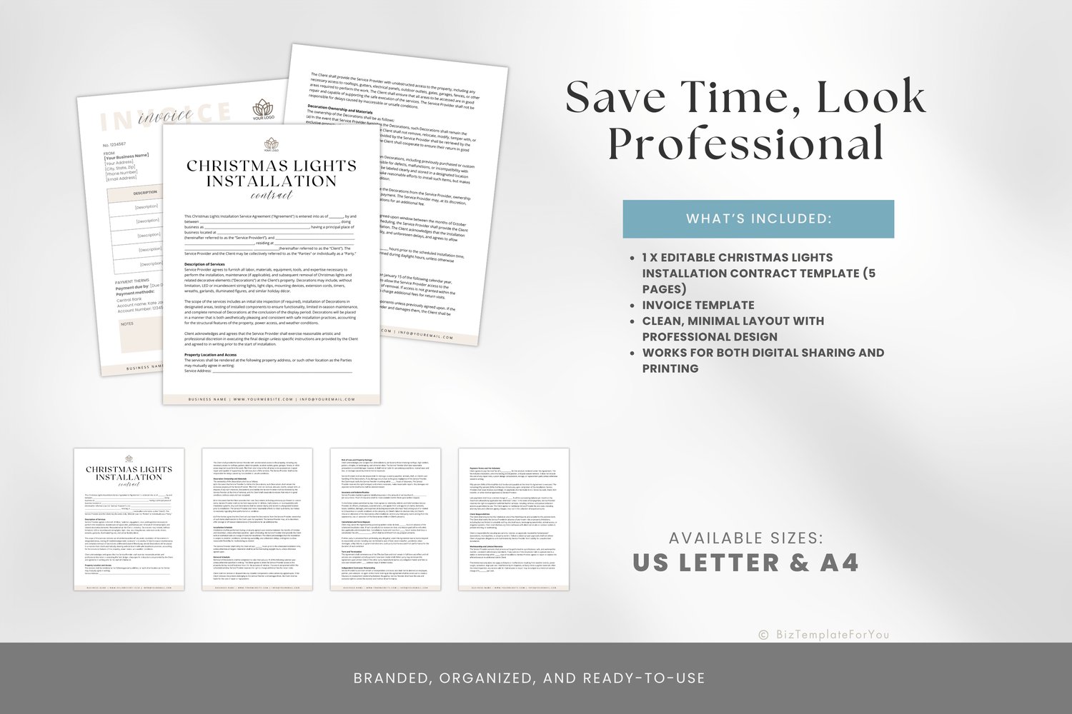• 1 x Editable Christmas Lights Installation Contract Template (5 pages)