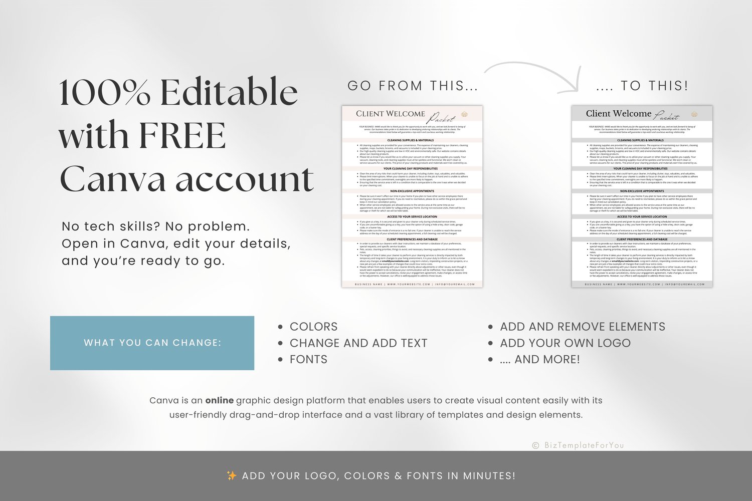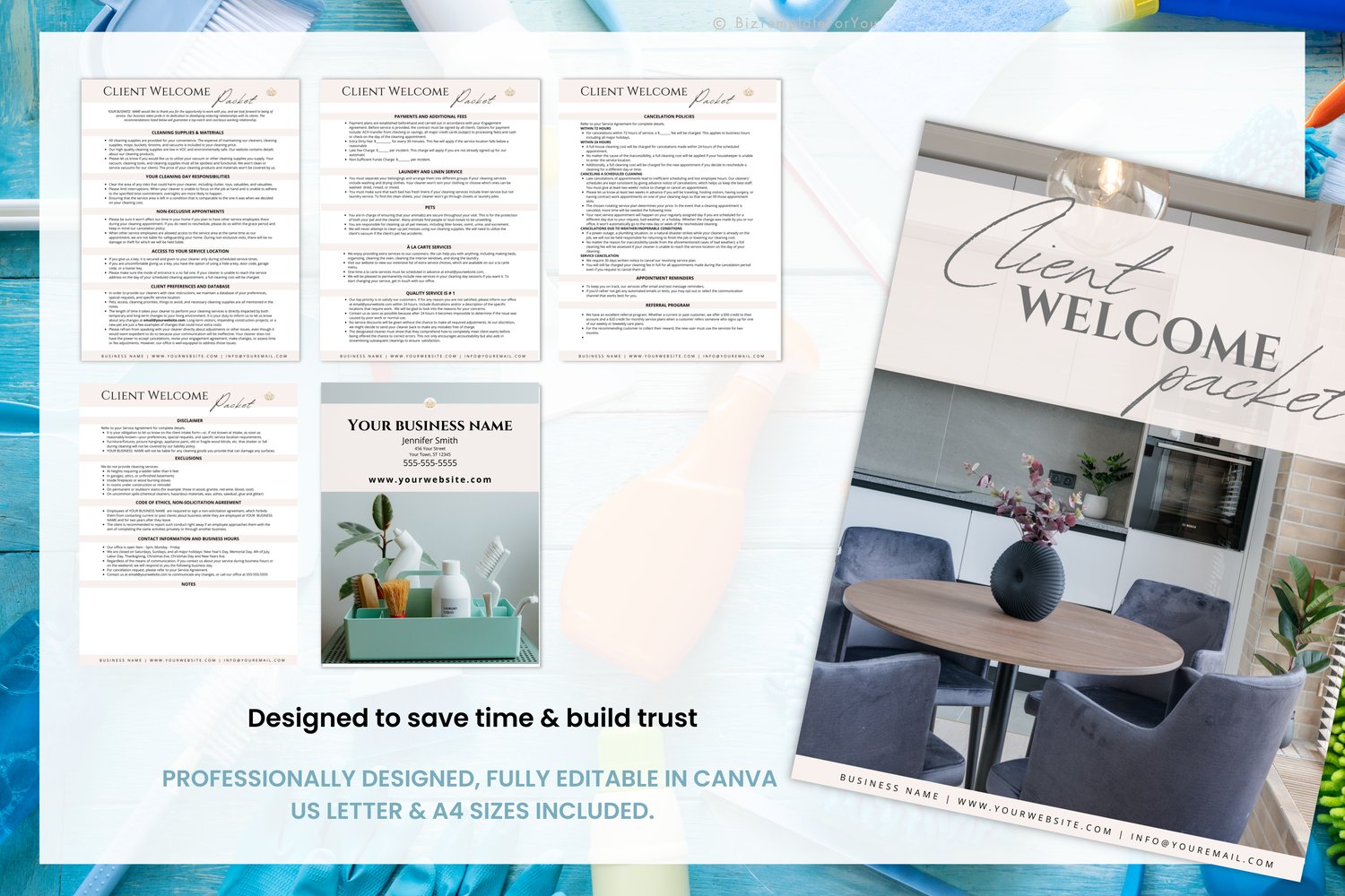 Cleaning Services Client Welcome Packet, Editable Client Onboarding Template, Client Welcome Kit made with Canva, Cleaning Client Packet #2035