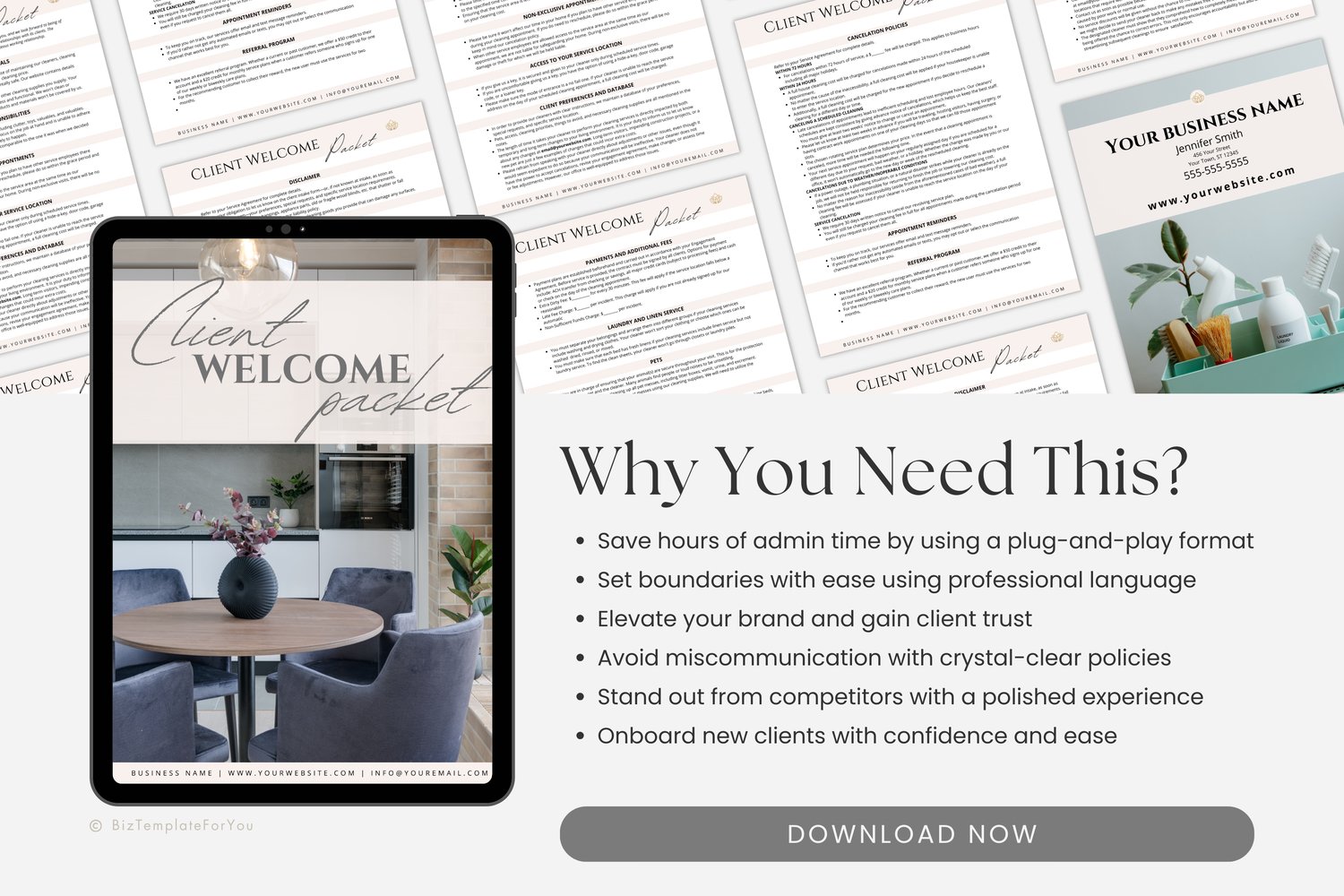 👉 Ready to impress your next client?✨ Grab this Canva Cleaning Client Welcome Packet today and elevate your onboarding process instantly.
