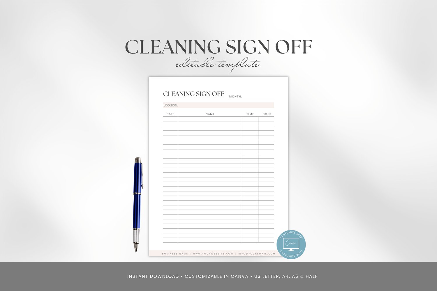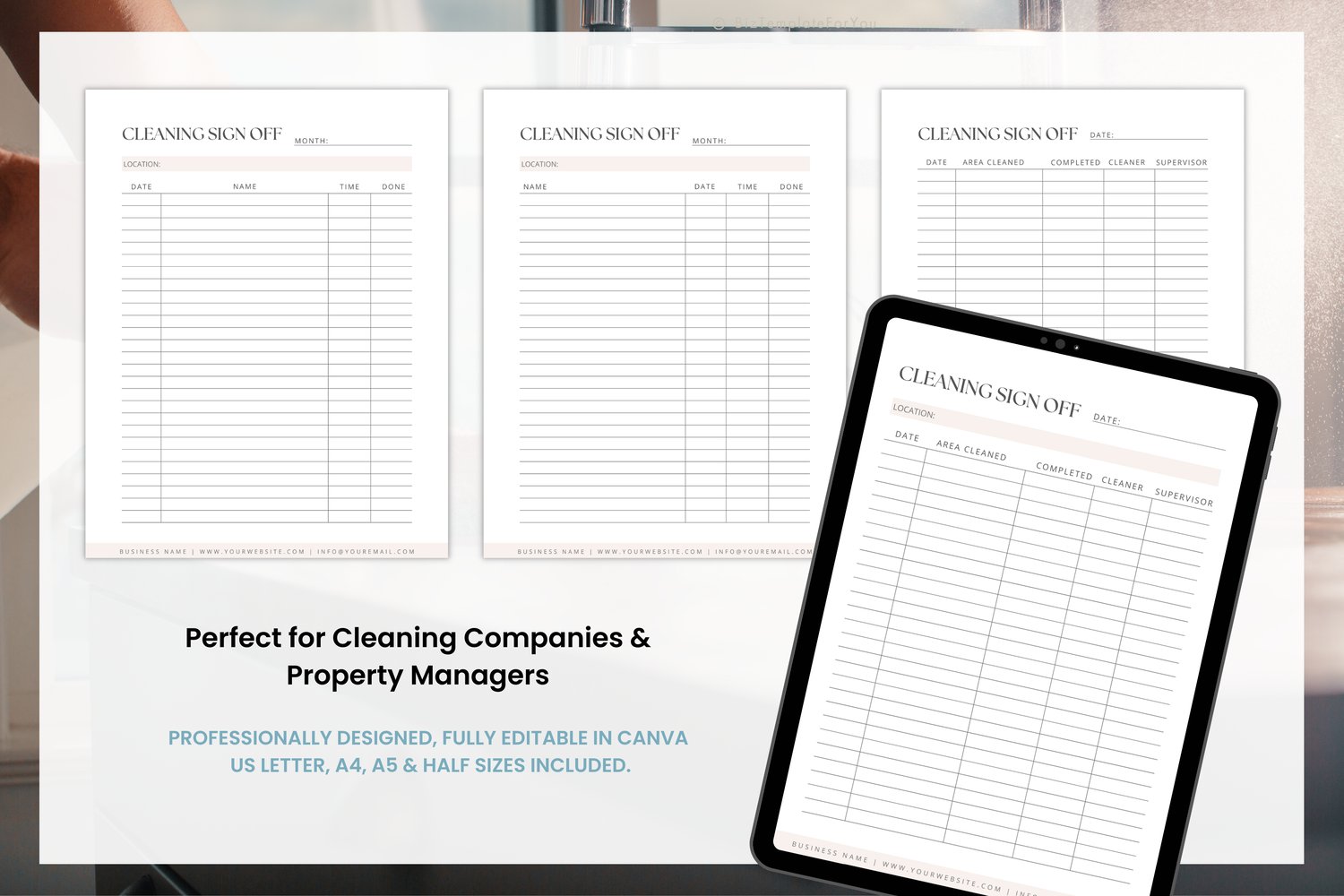 4 x Editable Cleaning Sign Off Sheet Template in Canva