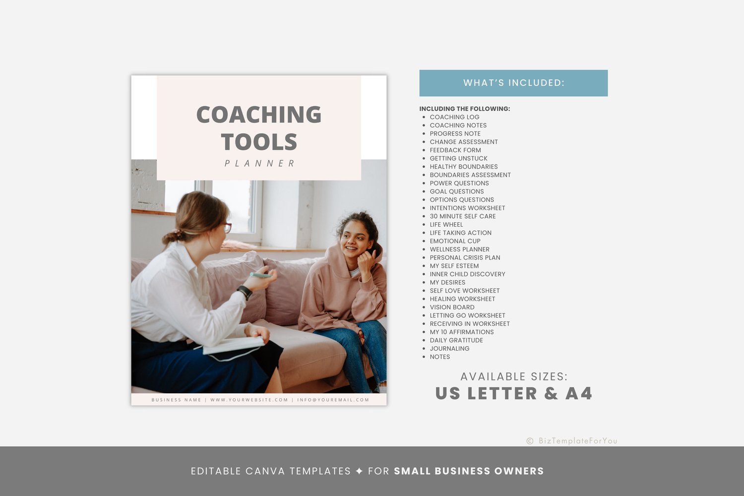 Editable Coaching Tool Planner Template, Productivity Tools Planner for Coaches, Printable Minimalist Planner, Canva Template #7080