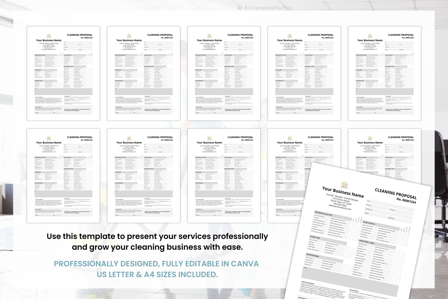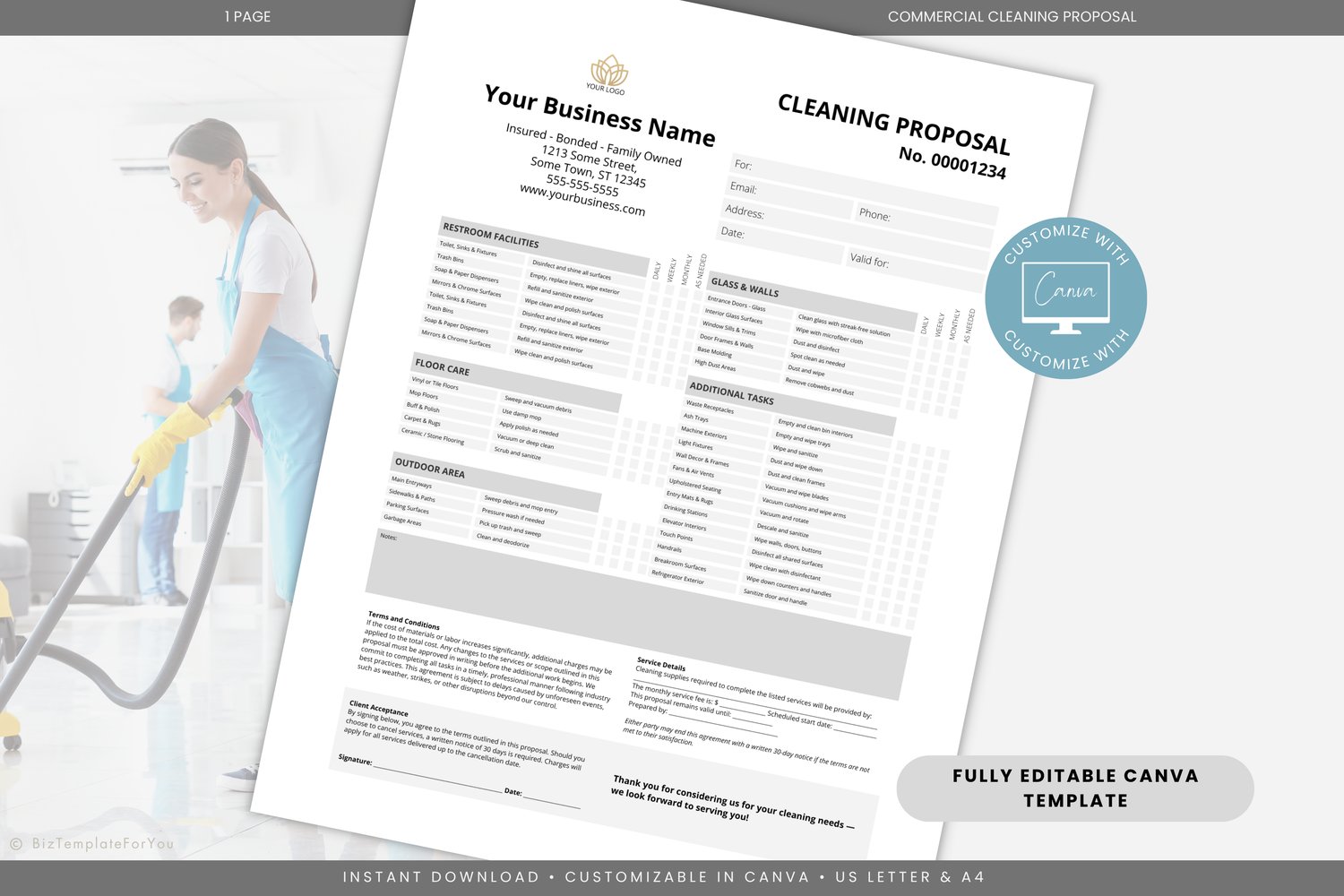 Commercial Cleaning Proposal Sheet Template | Canva Business Quote Form for Cleaning Services | Office Cleaning Proposal, Business Proposal #8015