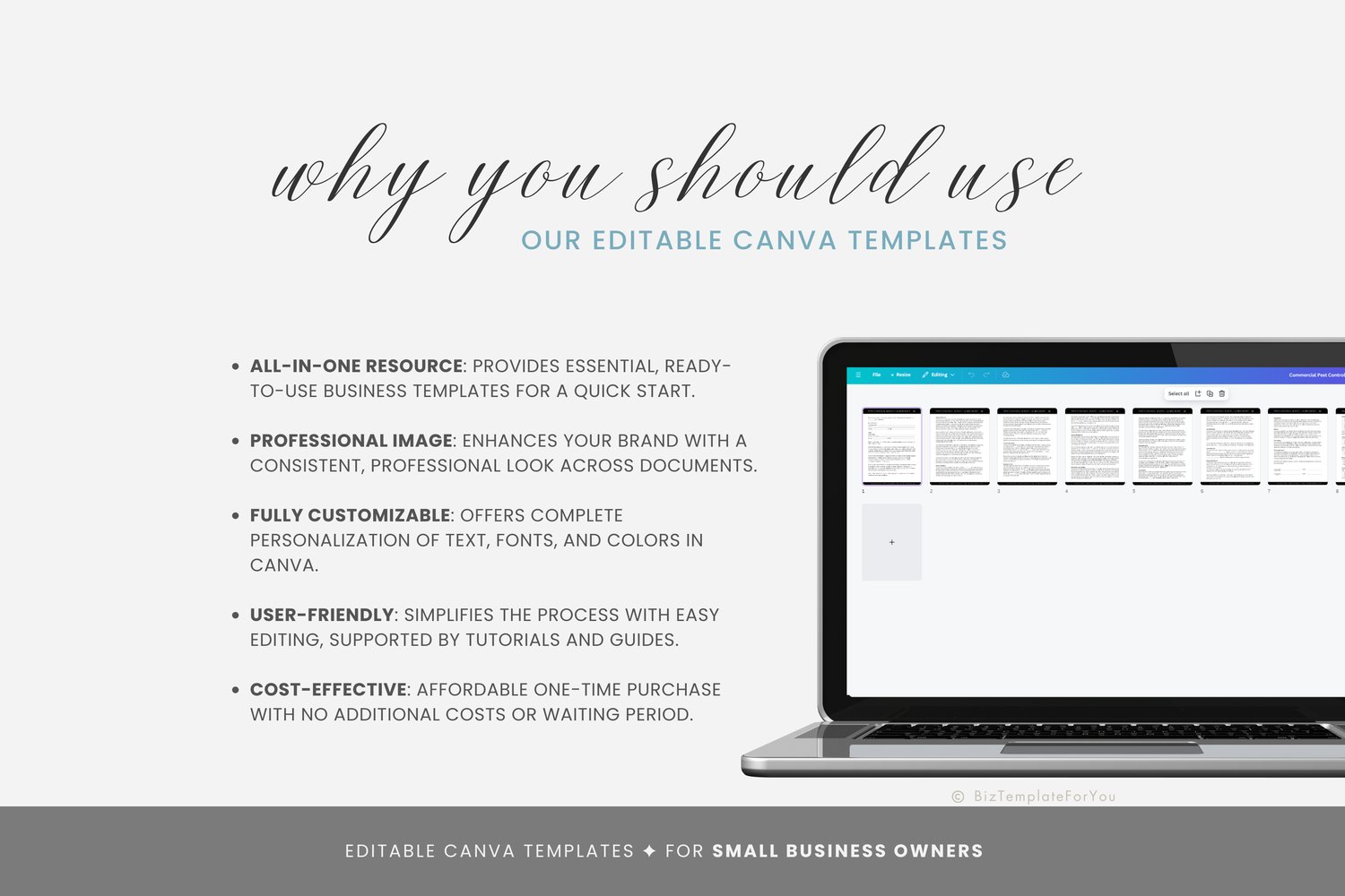 + All elements of our templates are FREE. BizTemplateForYou bears no responsibility for situations wherein the client utilizes PRO elements within Canva, resulting in charges incurred by Canva.