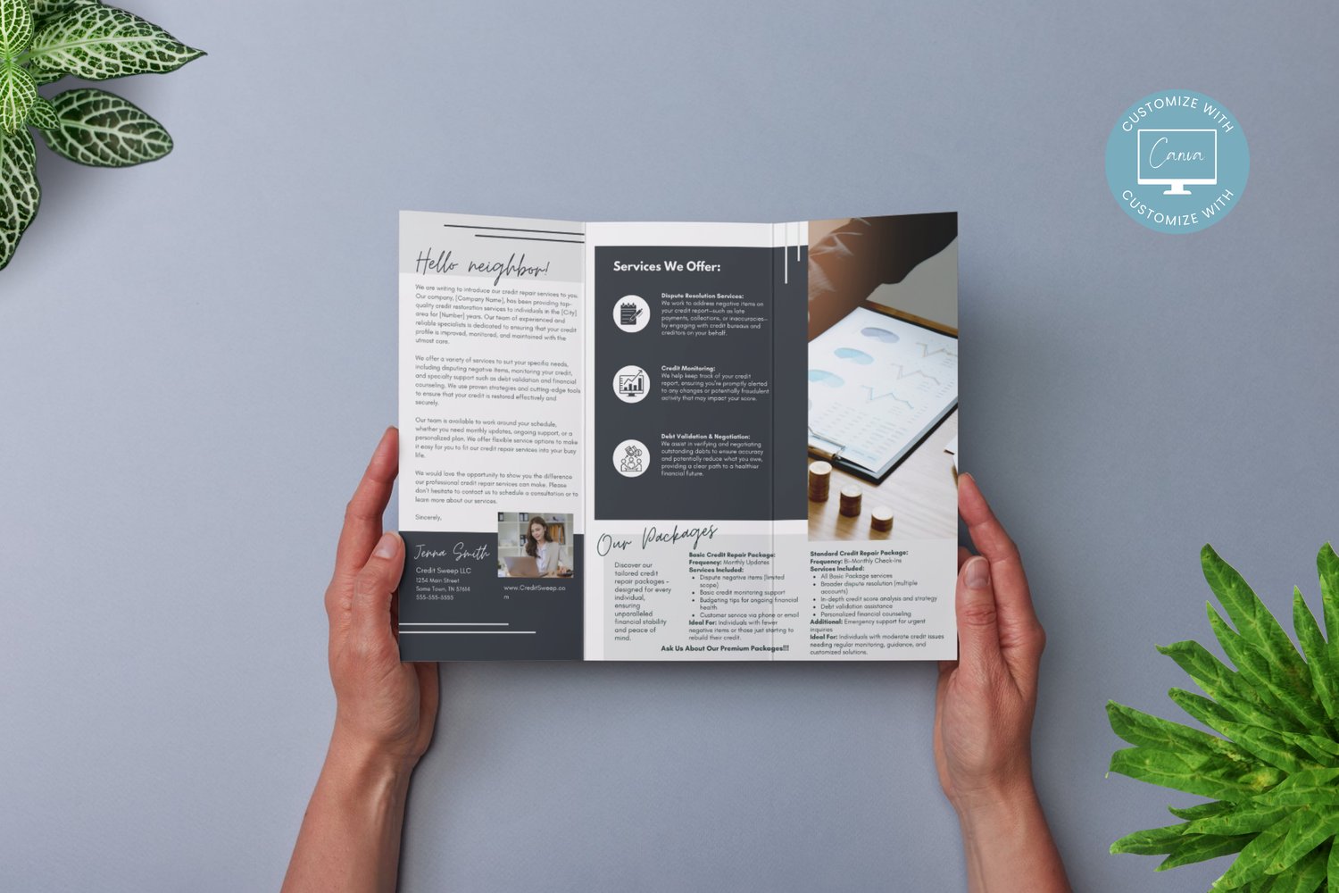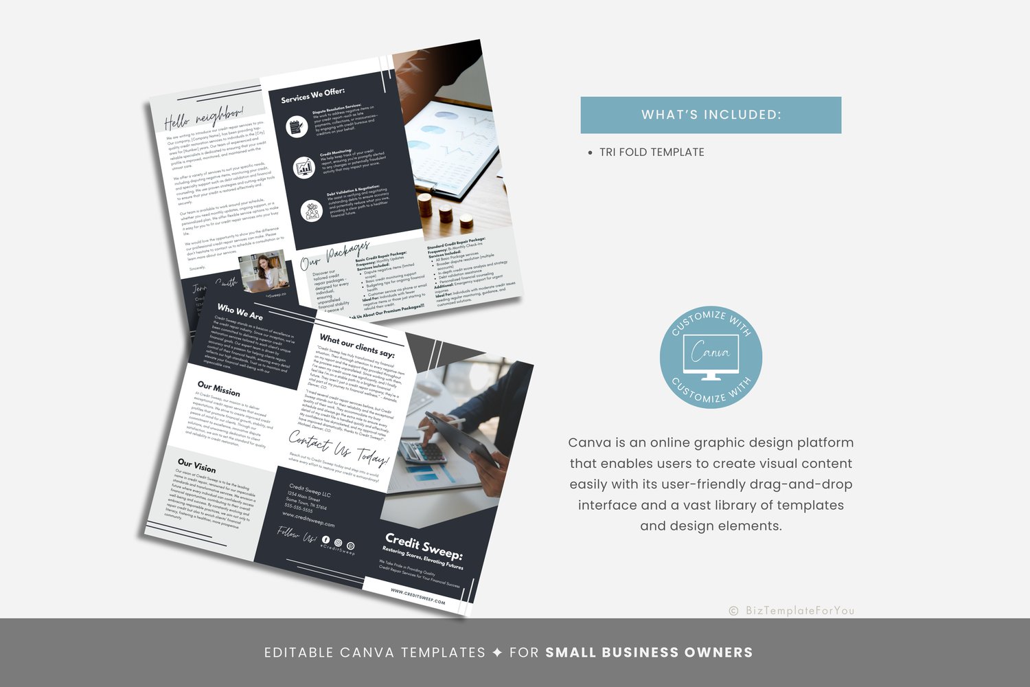 Editable Credit Repair Flyer Template, Credit Consulting Business Marketing Brochure, Financial Advisors, Tri-Fold Brochure, Canva Template #7095