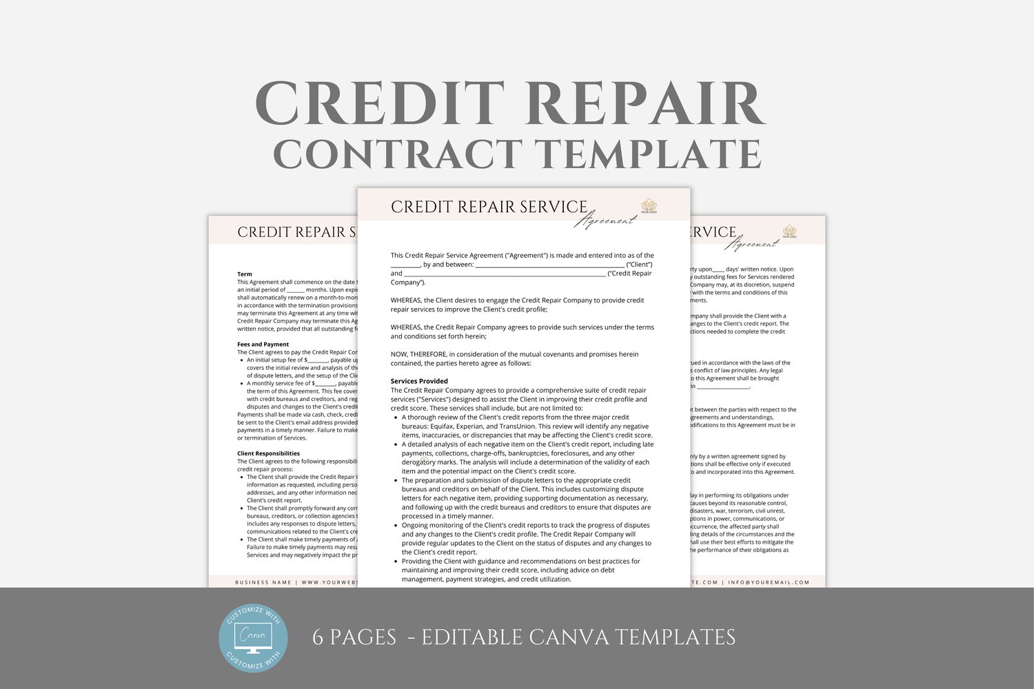 Editable Credit Repair Services Agreement Template, Freelance Credit History Repair Contract Template, Invoice Template, Canva editable #6036