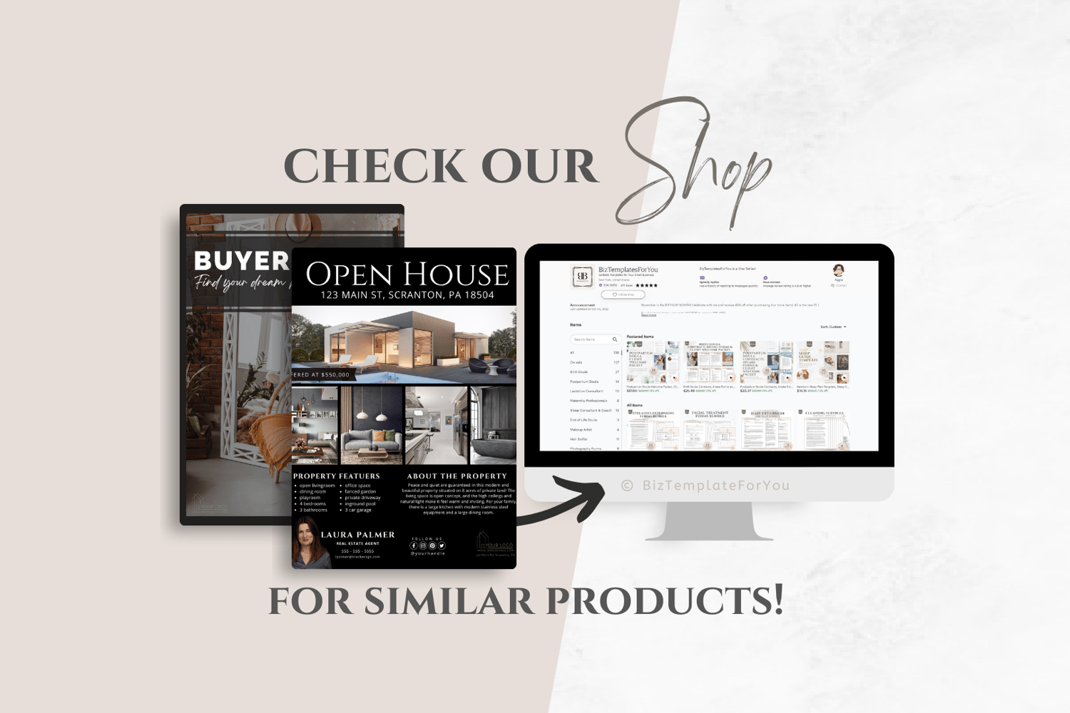 This is a bundle of 20 Real Estate Postcard Templates editable in Canva (FREE Account)! Text, font, and colors are all fully editable to give you complete control of your branding and create a cohesive look for your business.