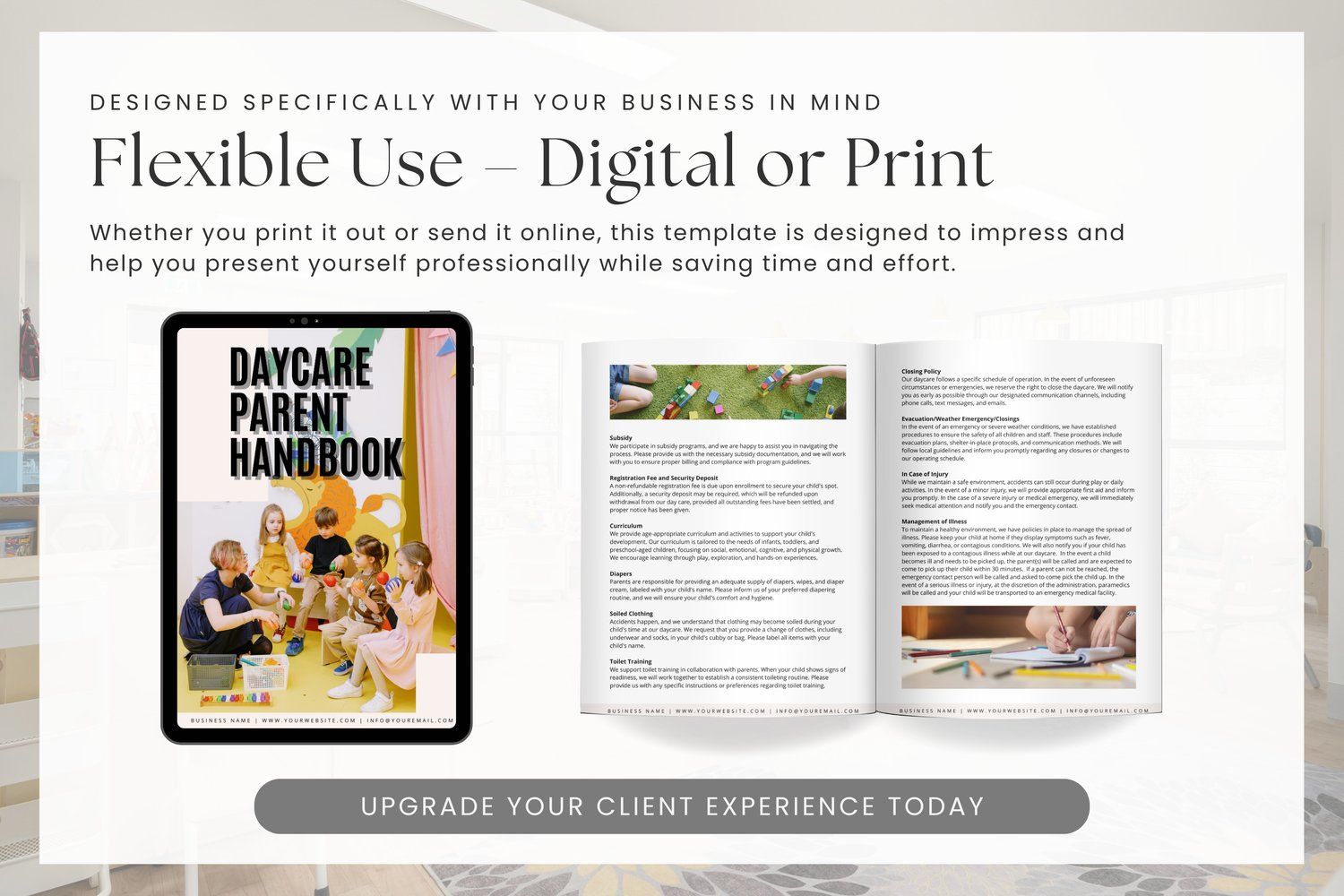 Whether you're just getting started or updating your daycare’s documents, this handbook saves you time, protects your business, and ensures every parent knows exactly what to expect.