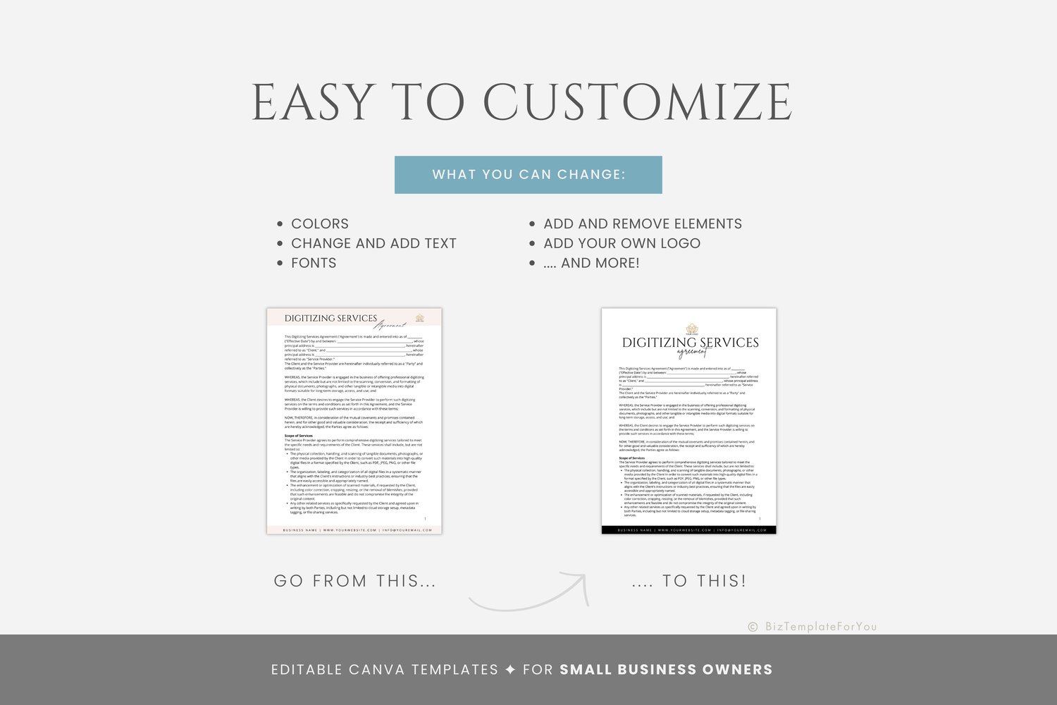 + All elements of our templates are FREE. BizTemplateForYou bears no responsibility for situations wherein the client utilizes PRO elements within Canva, resulting in charges incurred by Canva.