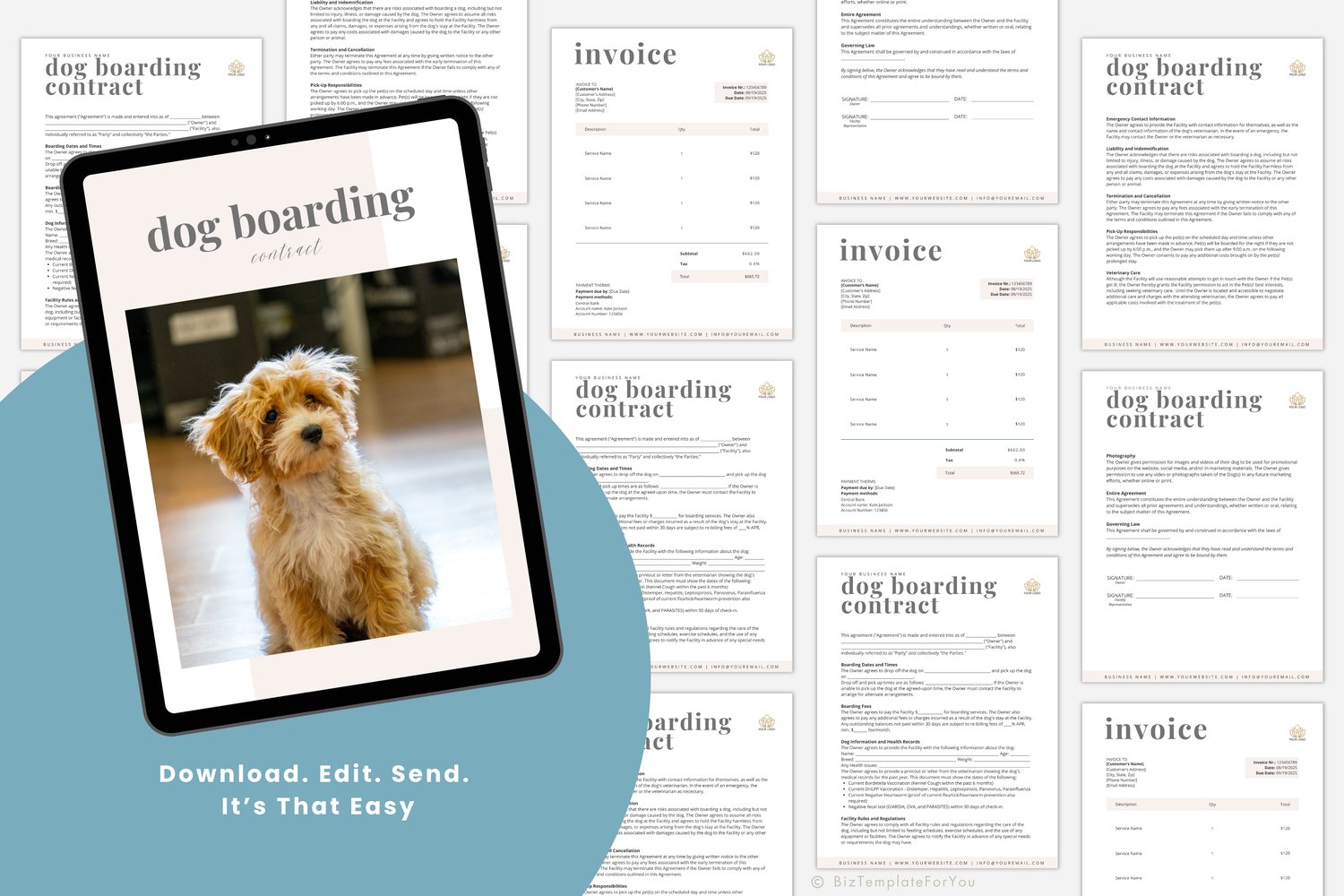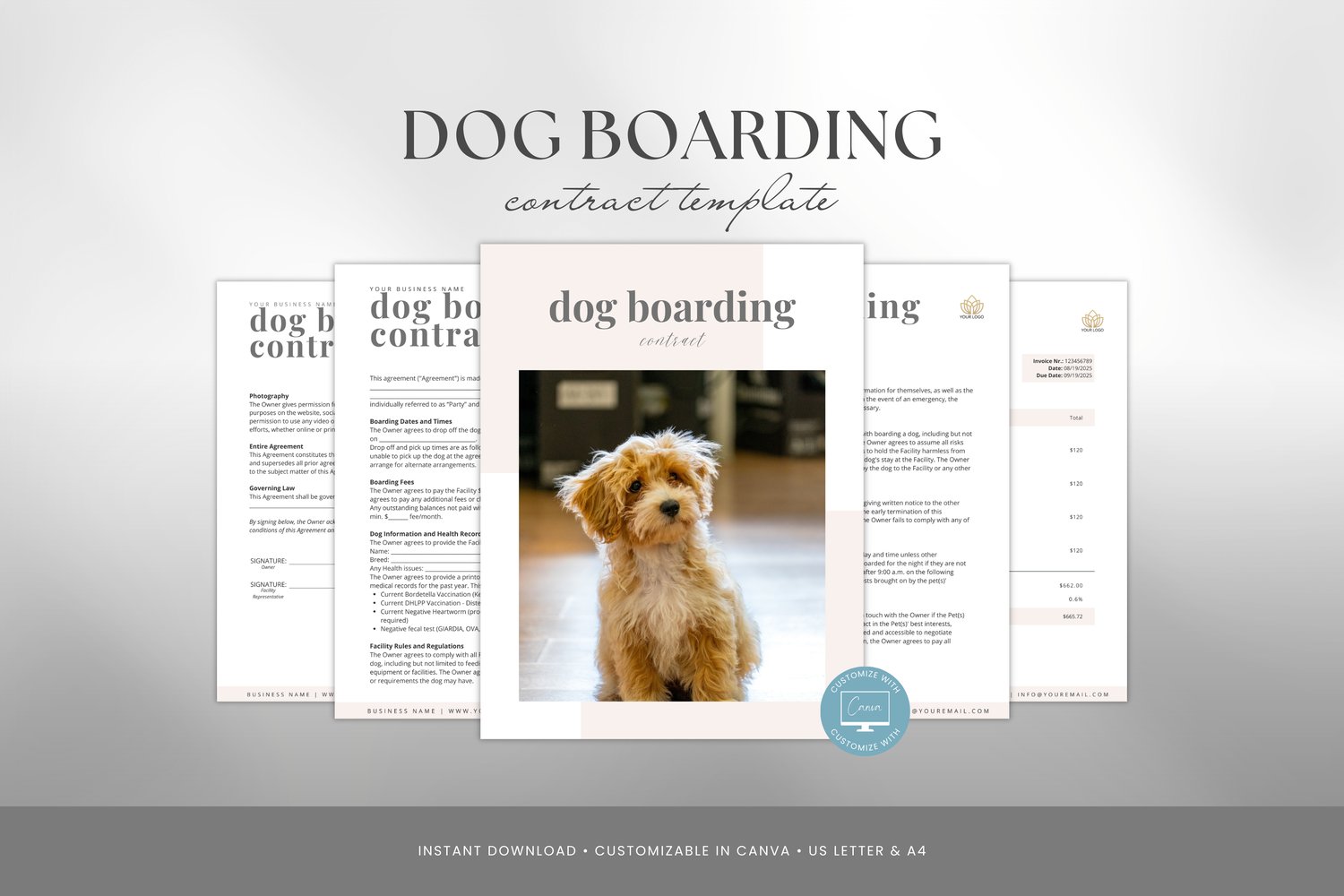 • 4 Pages Editable Dog Boarding Contract Template
