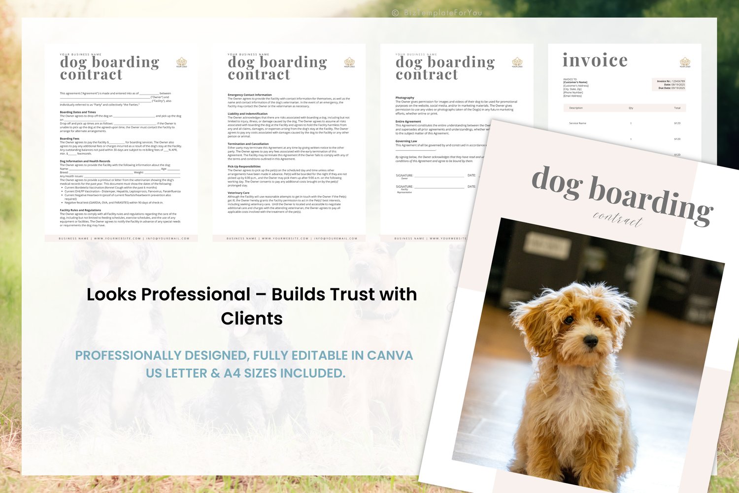 👉 Don’t wait until the last minute, make your onboarding process stress-free and professional today. Edit in Canva, send to clients, and protect your pet care business with confidence!