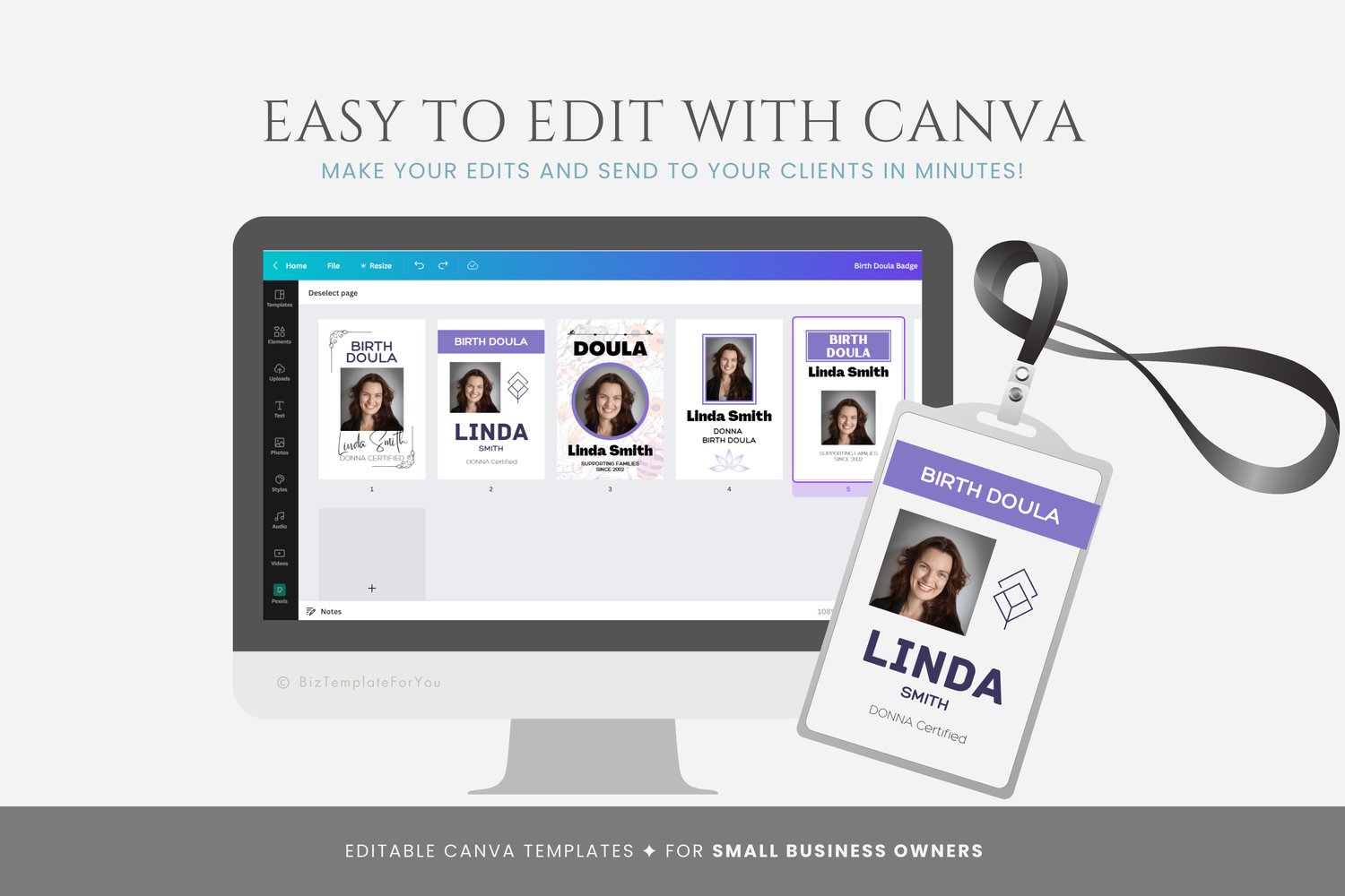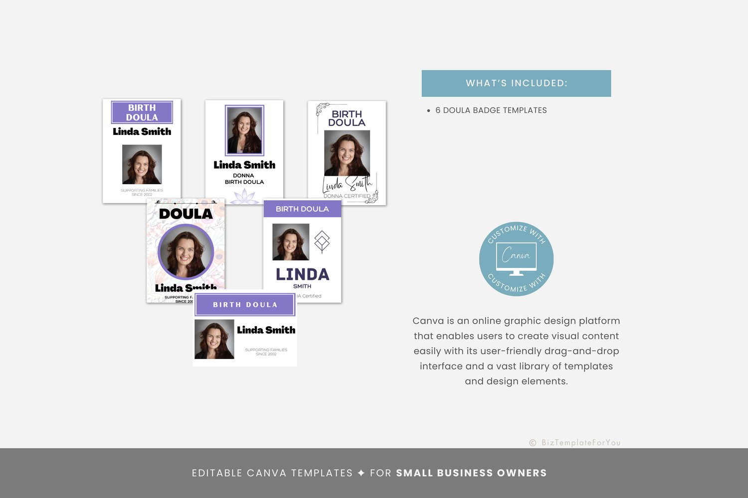 Doula Badge Template, Editable Professional Name Badge, Birth Worker Badge, Midwife Name Badge, Business Name Badge, Doula ID Badge #1083