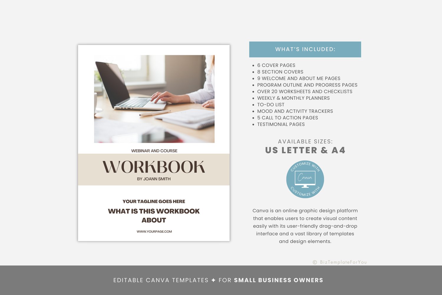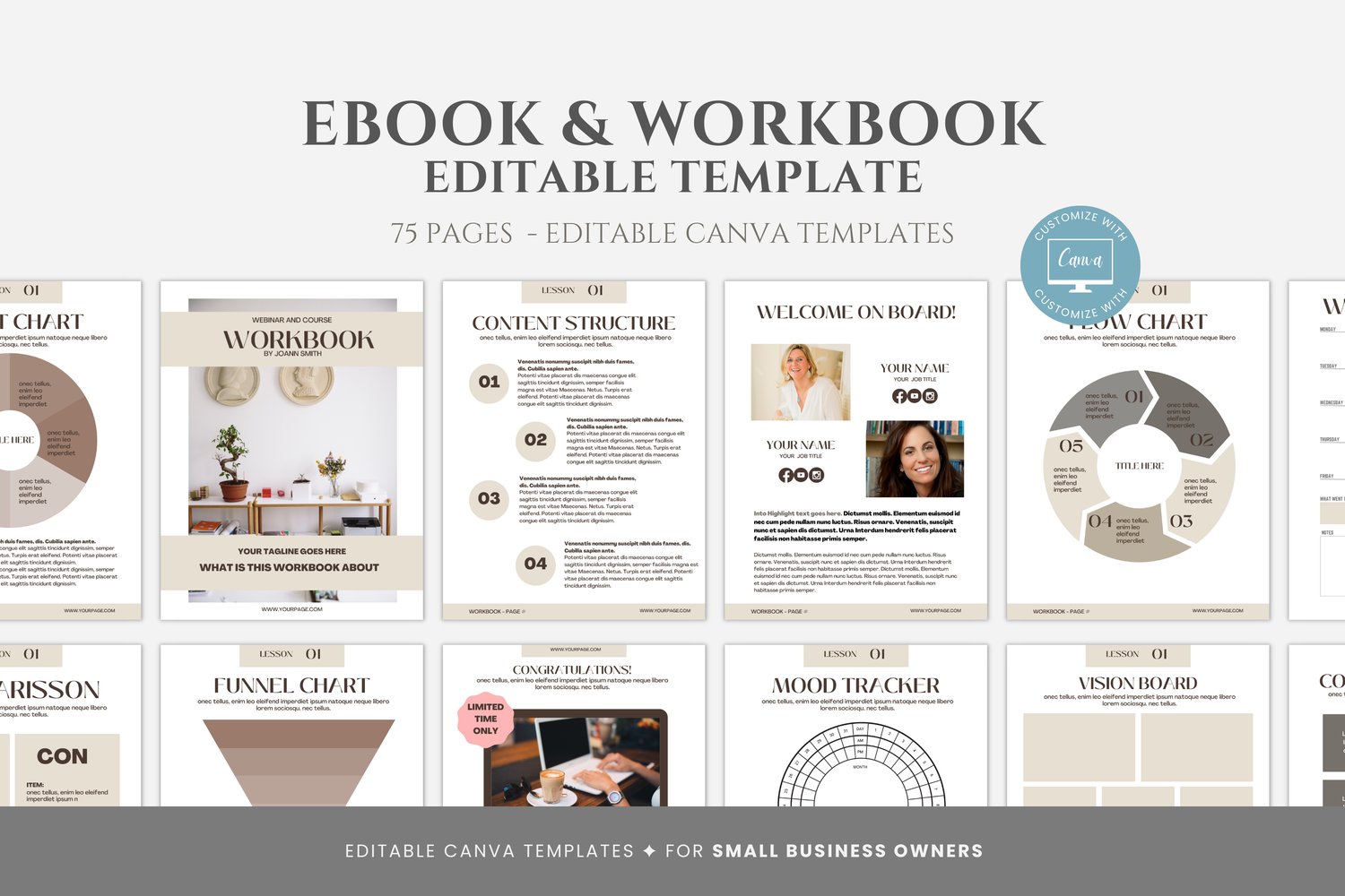 75 Page Editable Ebook Template Canva, Beige Workbook Template, Lead Magnet for Coaches, Course Creators, Bloggers, Small Business Owners, Canva editable #1013