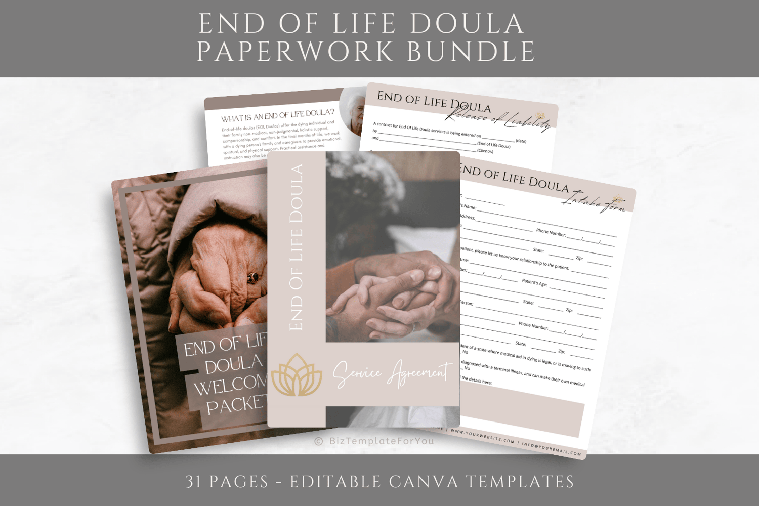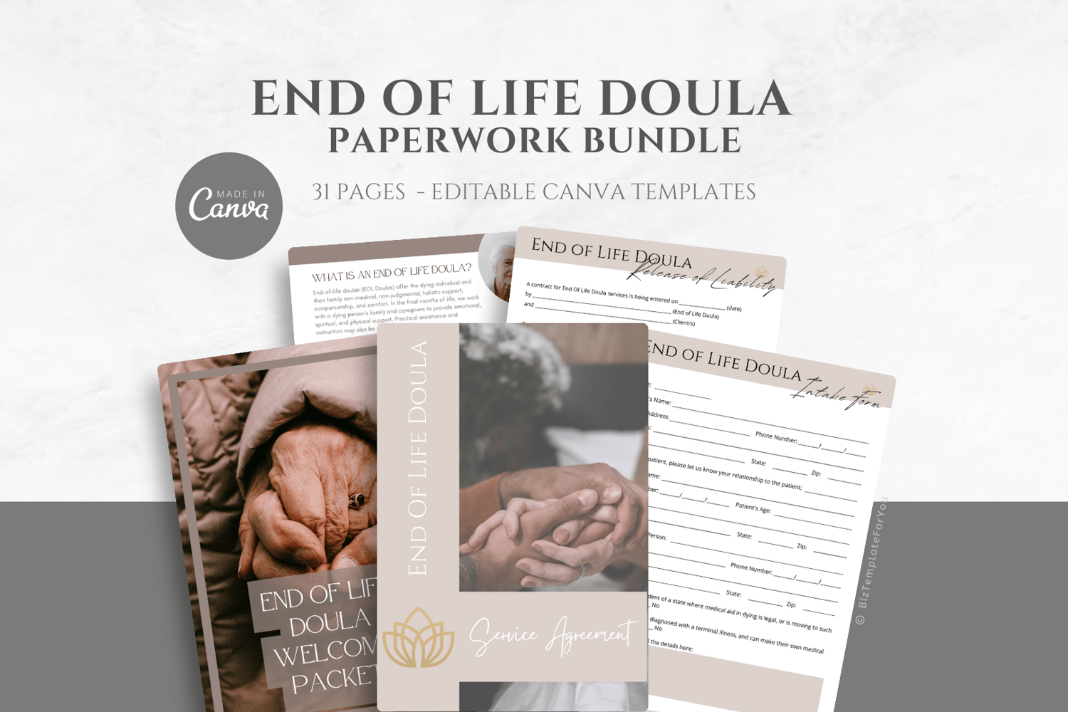 Editable End of Life Doula Paperwork Bundle, Client Welcome Packet Template, Death Doula Contract, Intake Form, Doula Information Booklet, Canva editable #2011