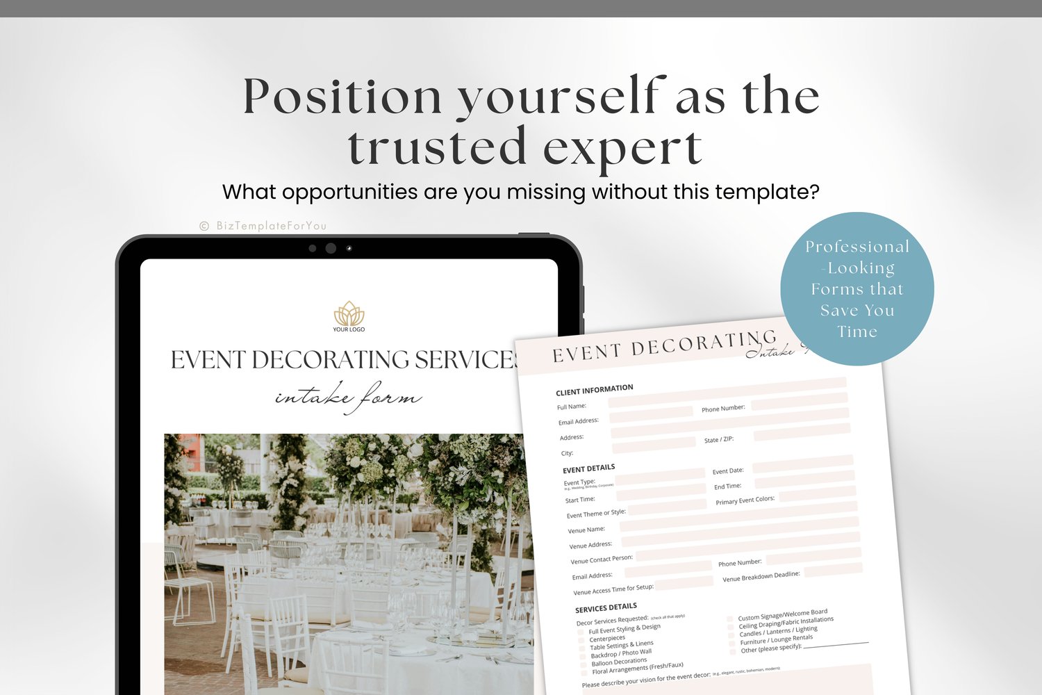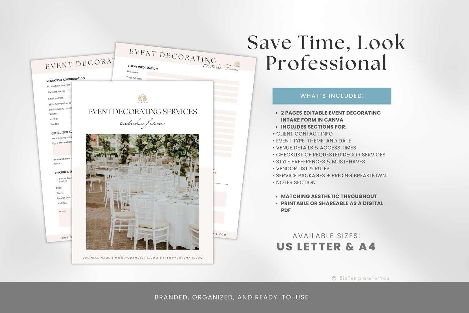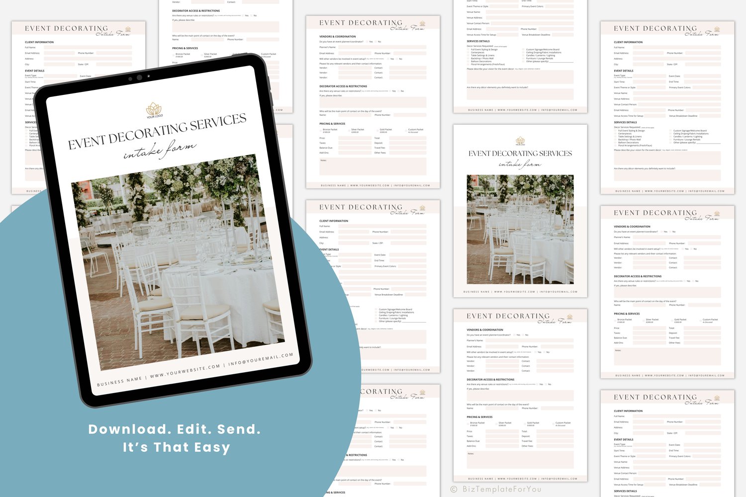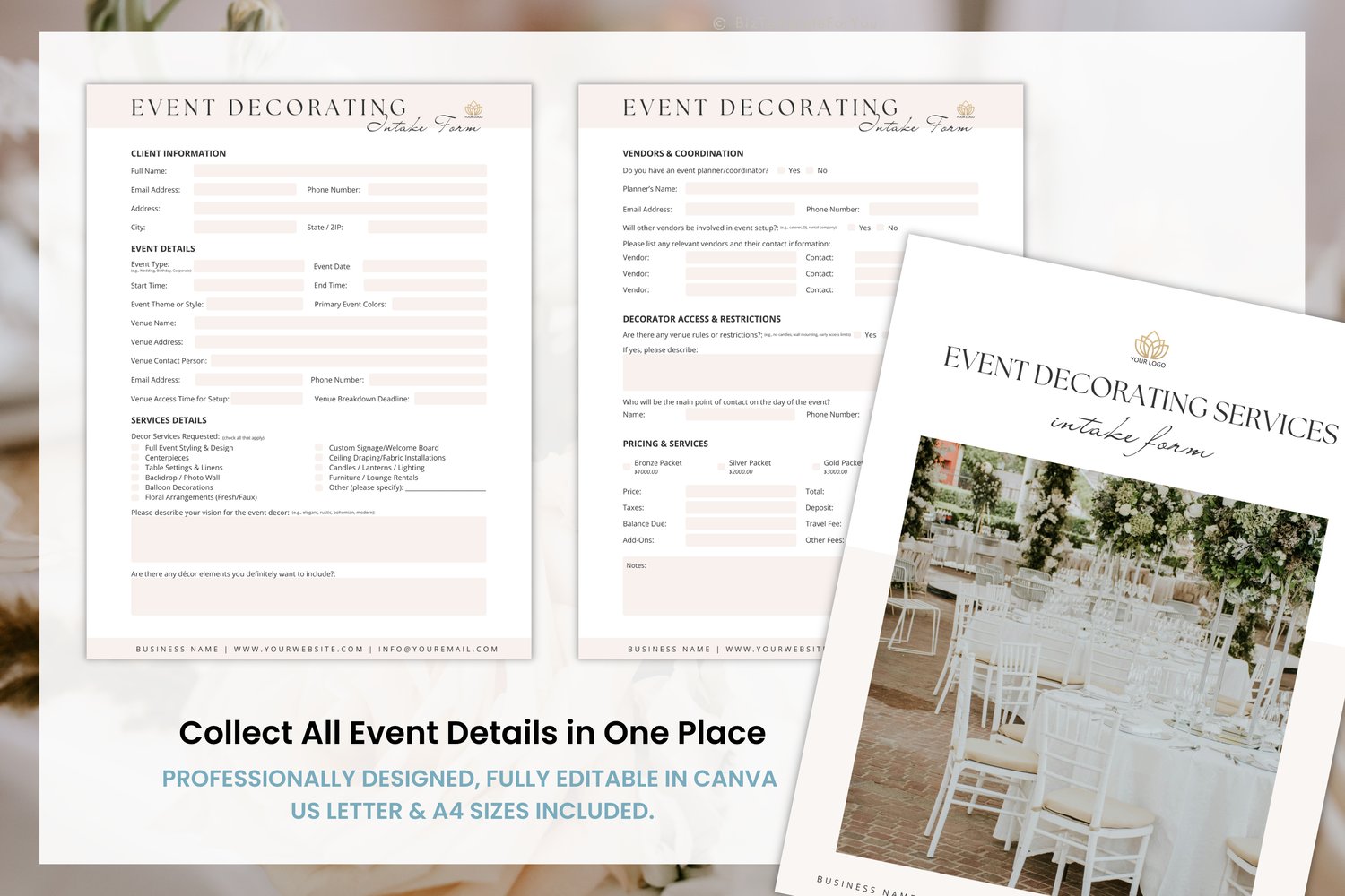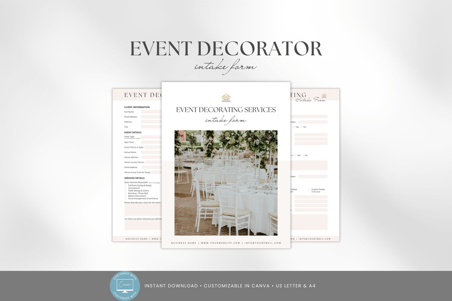 Event Decorating Intake Form Template, Event Planning Client Questionnaire, Party Decorator Forms, Event Decor Business, Canva Forms #8035