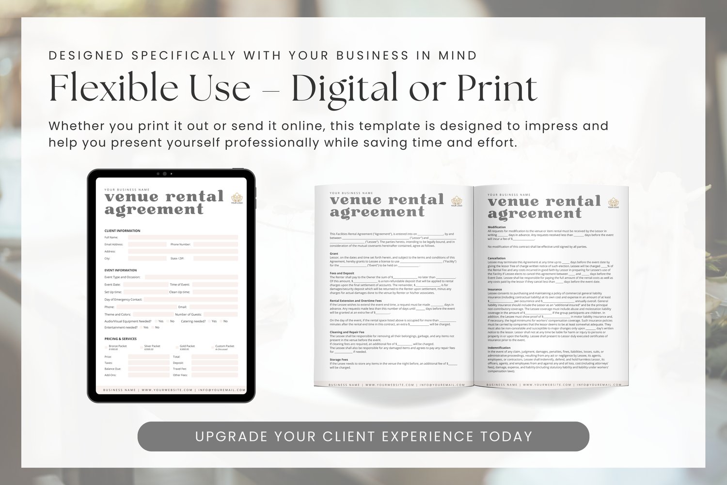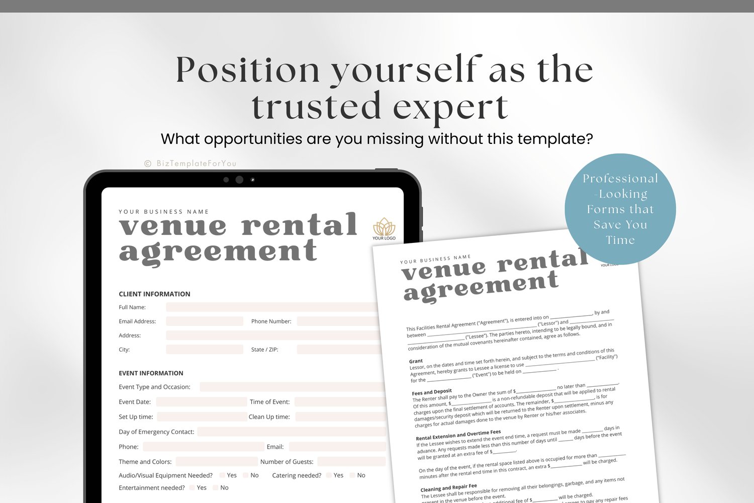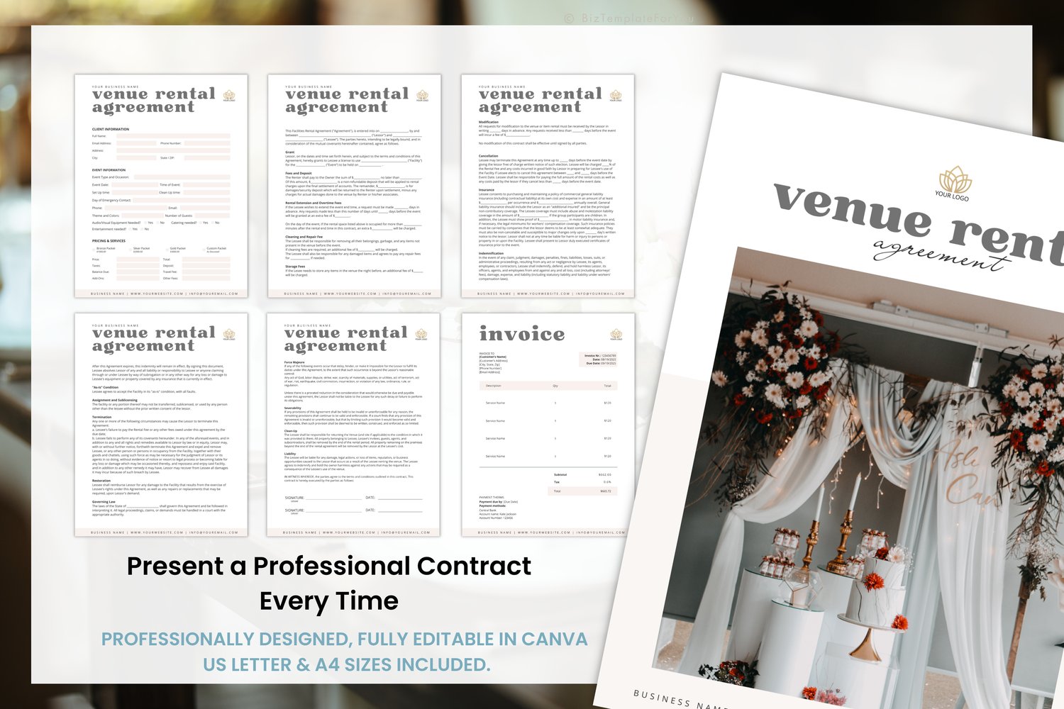 • 1 x Editable Venue Rental Agreement Template (7 pages)