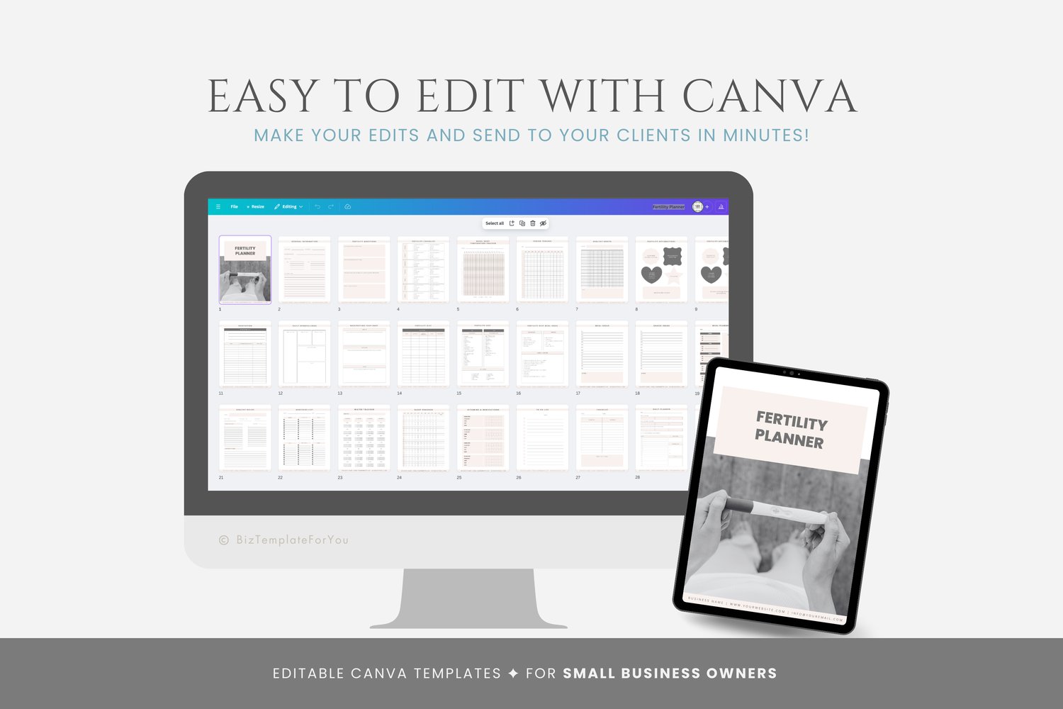 This is a 33-page Fertility Planner Template editable in Canva (FREE Account)! The text is already written for you, but it can also be easily edited in CANVA to add anything particular to your business or area. It is also completely customizable. Text, font, and colors are all fully editable to give you complete control of your branding and create a cohesive look for your business.