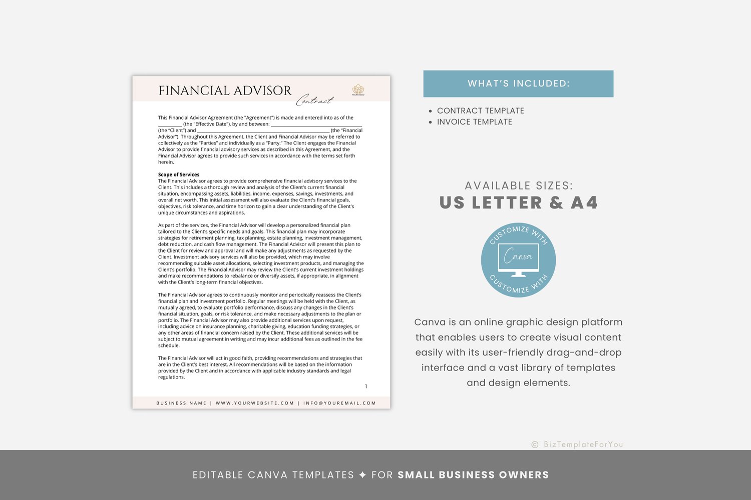 Editable Financial Advisor Contract Template, Financial Coach Service Agreement, Money Management, Business Coach, Accountant, Canva editable #7028
