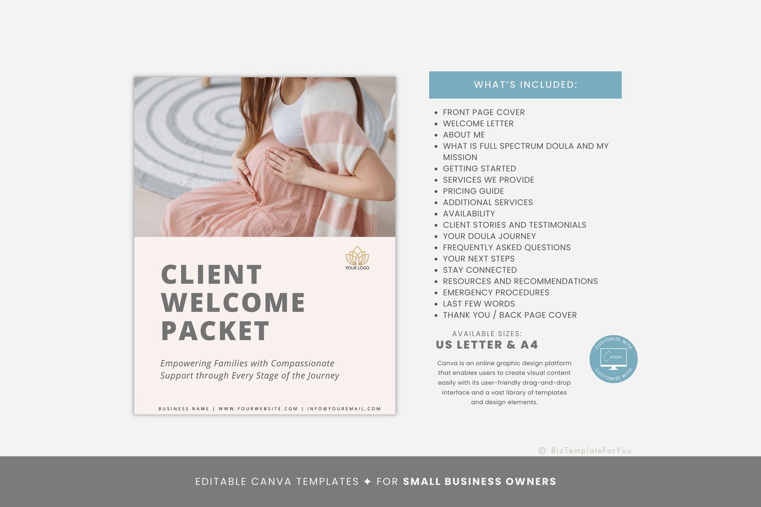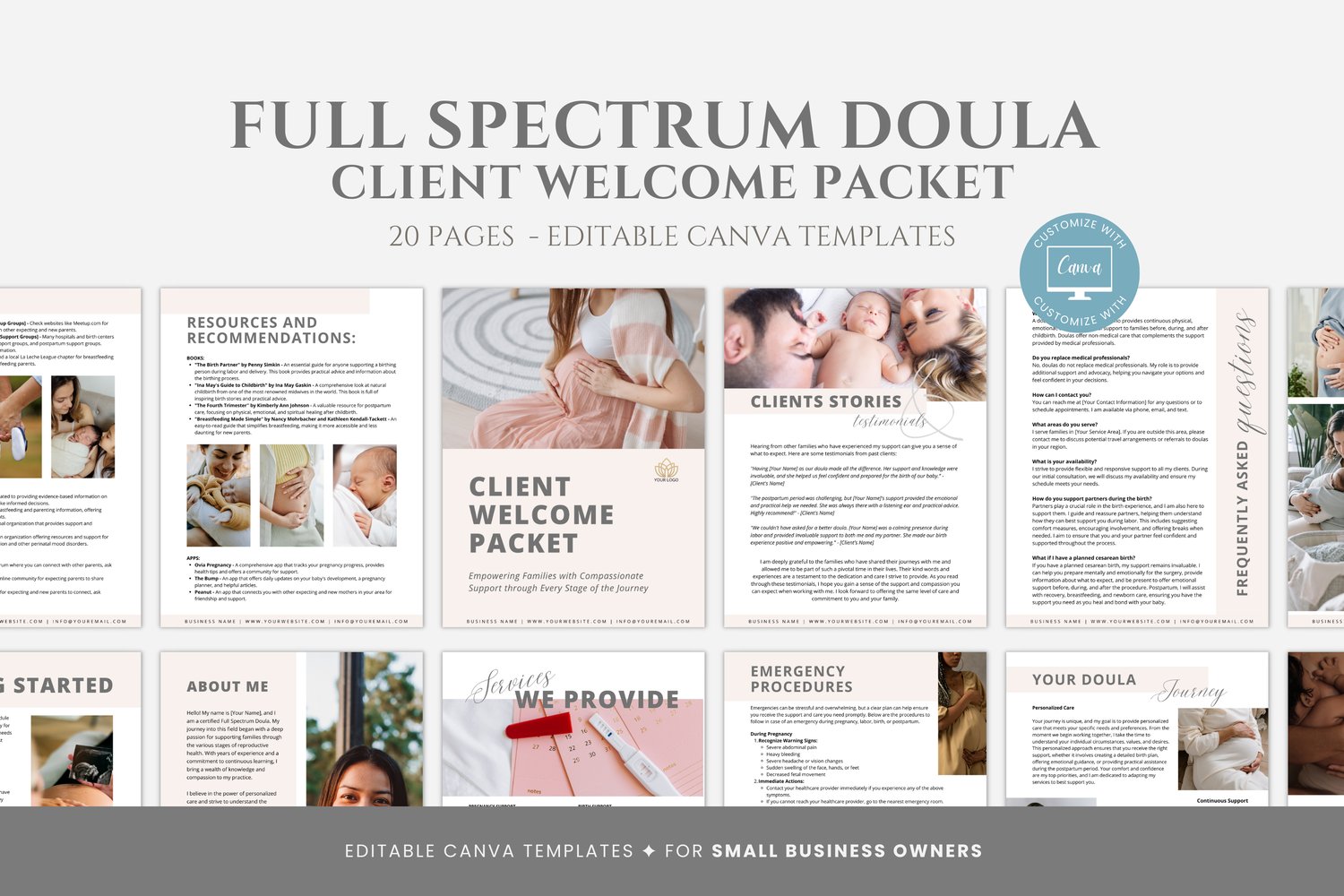 Editable Full Spectrum Doula Client Welcome Packet Template, Doula Services, Pricing Guide, Full Spectrum Doula Forms, Client Onboarding, Canva #6056