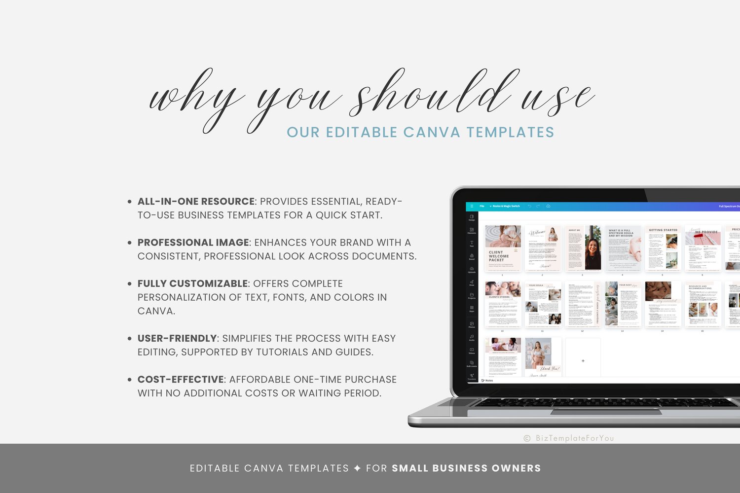 + All elements of our templates are FREE. BizTemplateForYou bears no responsibility for situations wherein the client utilizes PRO elements within Canva, resulting in charges incurred by Canva.