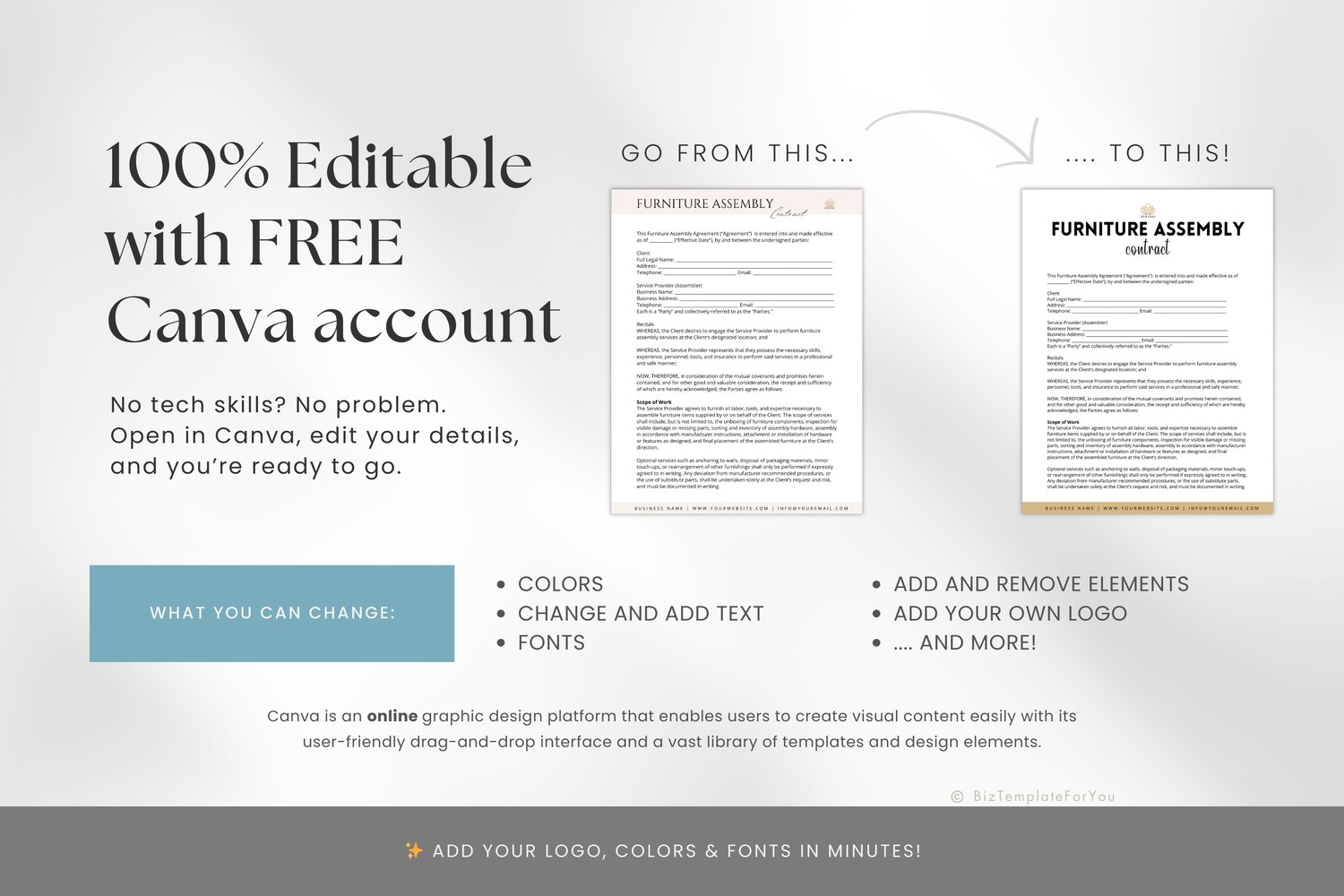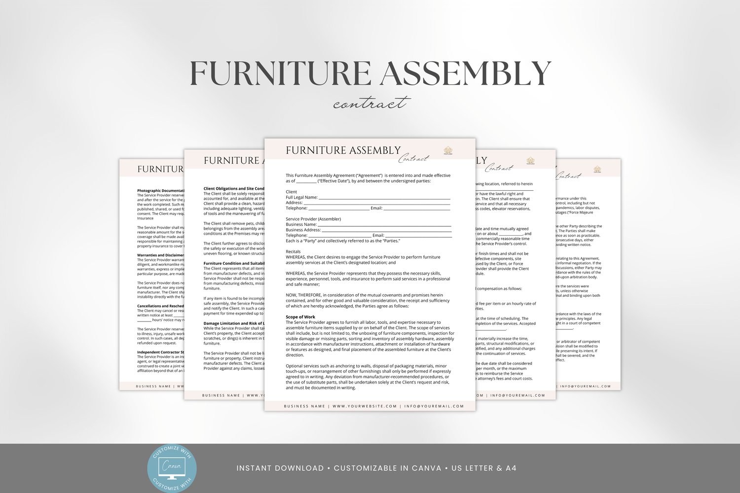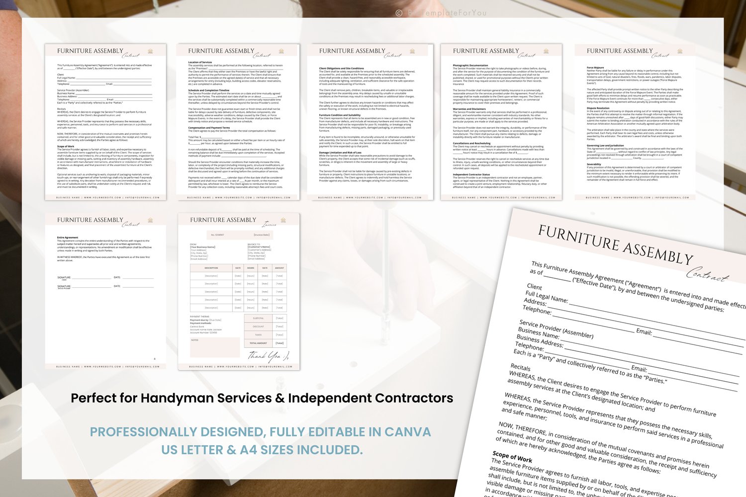 • 1 x Editable Furniture Assembly Contract Template
