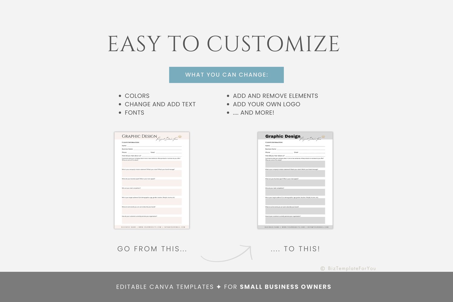 + All elements of our templates are FREE. BizTemplateForYou bears no responsibility for situations wherein the client utilizes PRO elements within Canva, resulting in charges incurred by Canva.