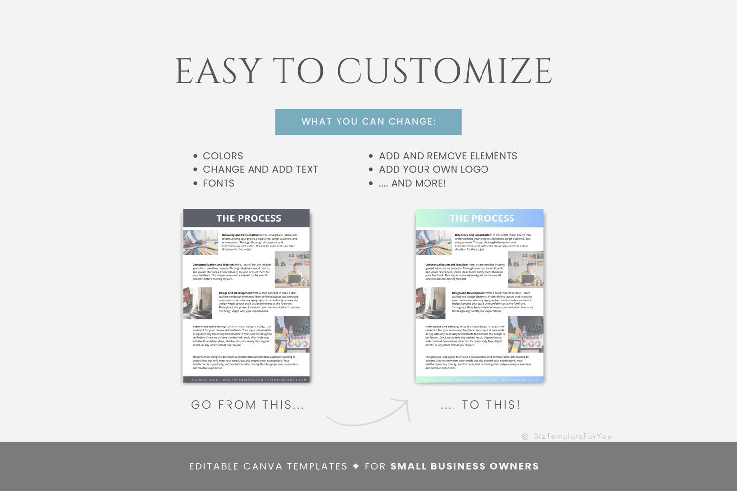 All of the files included in this download are original and copyrighted by Biz Templates For You. Files are for personal use only and may not be resold, copied, distributed, or shared with a third party. ©BIZ TEMPLATES FOR YOU