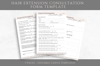 Fully Editable Hair Extension Consultation Form Template for Hairstylists. Easily editable in Canva. Hair Extension Client Intake Form #2047