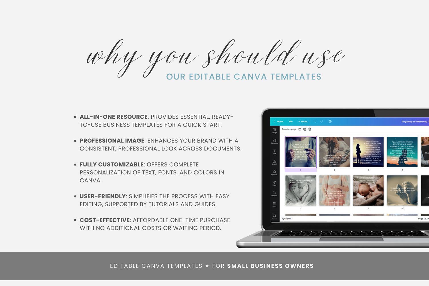 Finding the time to create unique and captivating content can be a challenge, especially when you’re balancing everything else in life. Our 200 pregnancy and maternity-themed templates take the hassle out of content creation. Whether you want to post about first kicks, baby showers, or nursery setups, these templates give you endless possibilities to keep your audience captivated and engaged.