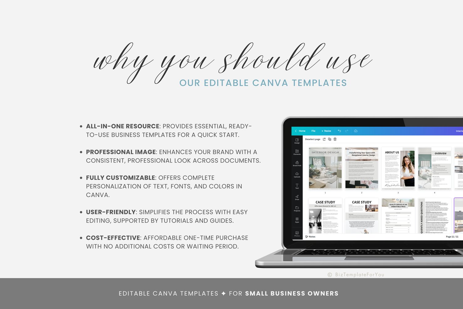 + All elements of our templates are FREE. BizTemplateForYou bears no responsibility for situations wherein the client utilizes PRO elements within Canva, resulting in charges incurred by Canva.