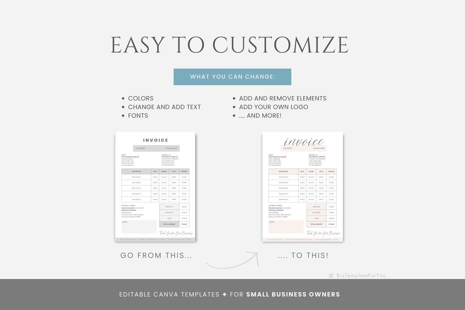 This is a 2-page Invoice Template editable in Canva (FREE Account)! The text is already written for you, but it can also be easily edited in CANVA to add anything particular to your business or area. It is also completely customizable. Text, font, and colors are all fully editable to give you complete control of your branding and create a cohesive look for your business.