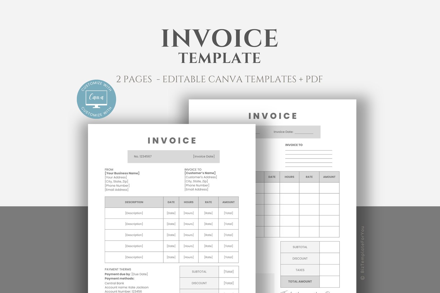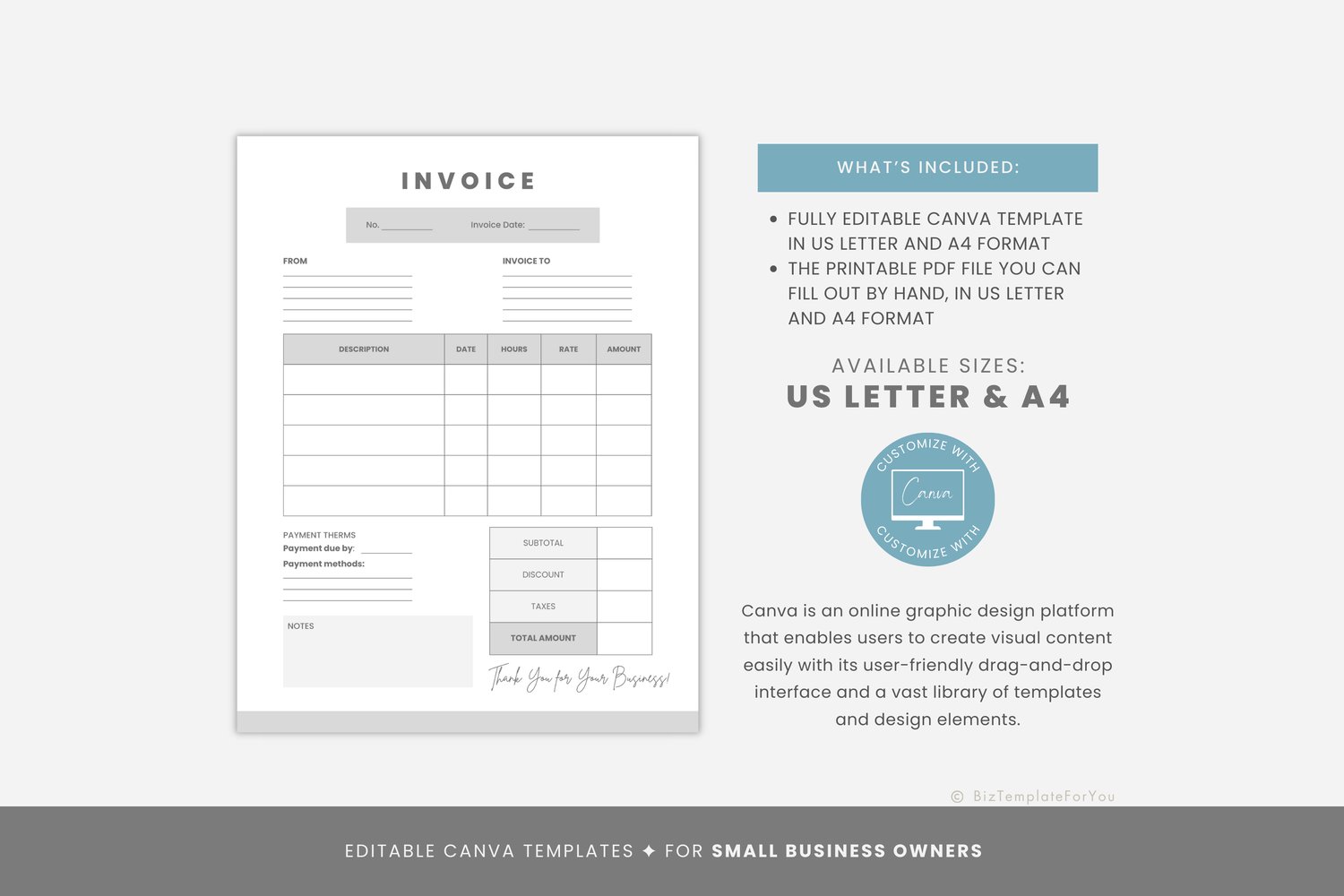 Editable Invoice Template, Printable Invoice Template, Small Business Invoice Form, Business Invoice Form, Canva Template #4087