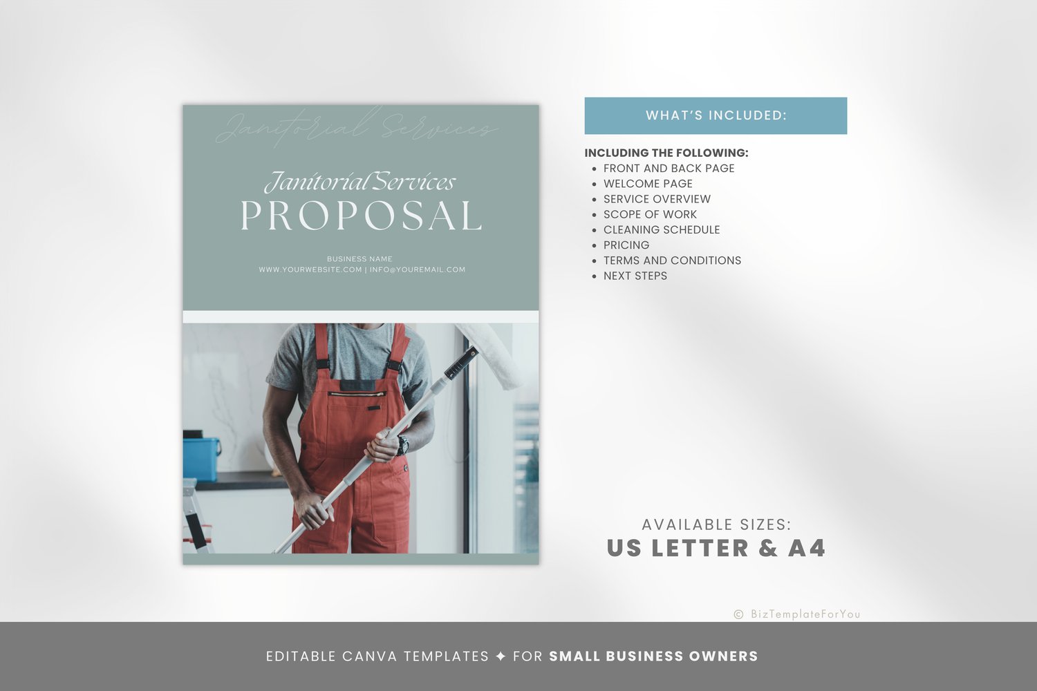 Janitorial Services Proposal Template for Cleaning Service Business. Fully editable in Canva. Office Cleaning Proposal, Business Proposal #8012